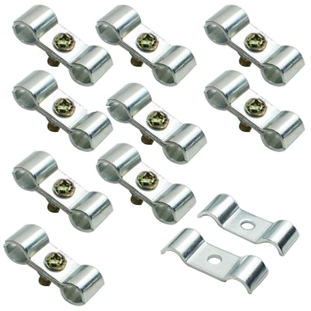 Svaitend Kennel Clamps Shelf Pole Connector Double Port Pipe Clamps Clips 12mm/0.78″ Set of 10 (12mm) Silver