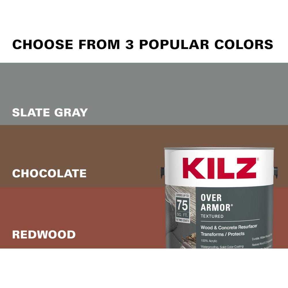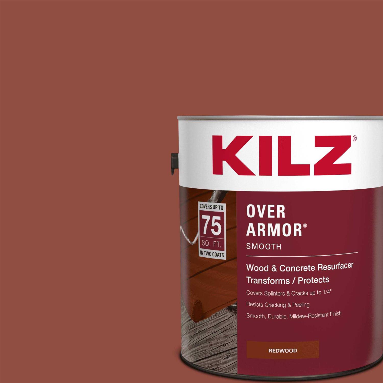 - This is a 1-gallon can of KILZ Over Armor Smooth Surface Coating in redwood. Covers approximately 75 square feet per gallon.