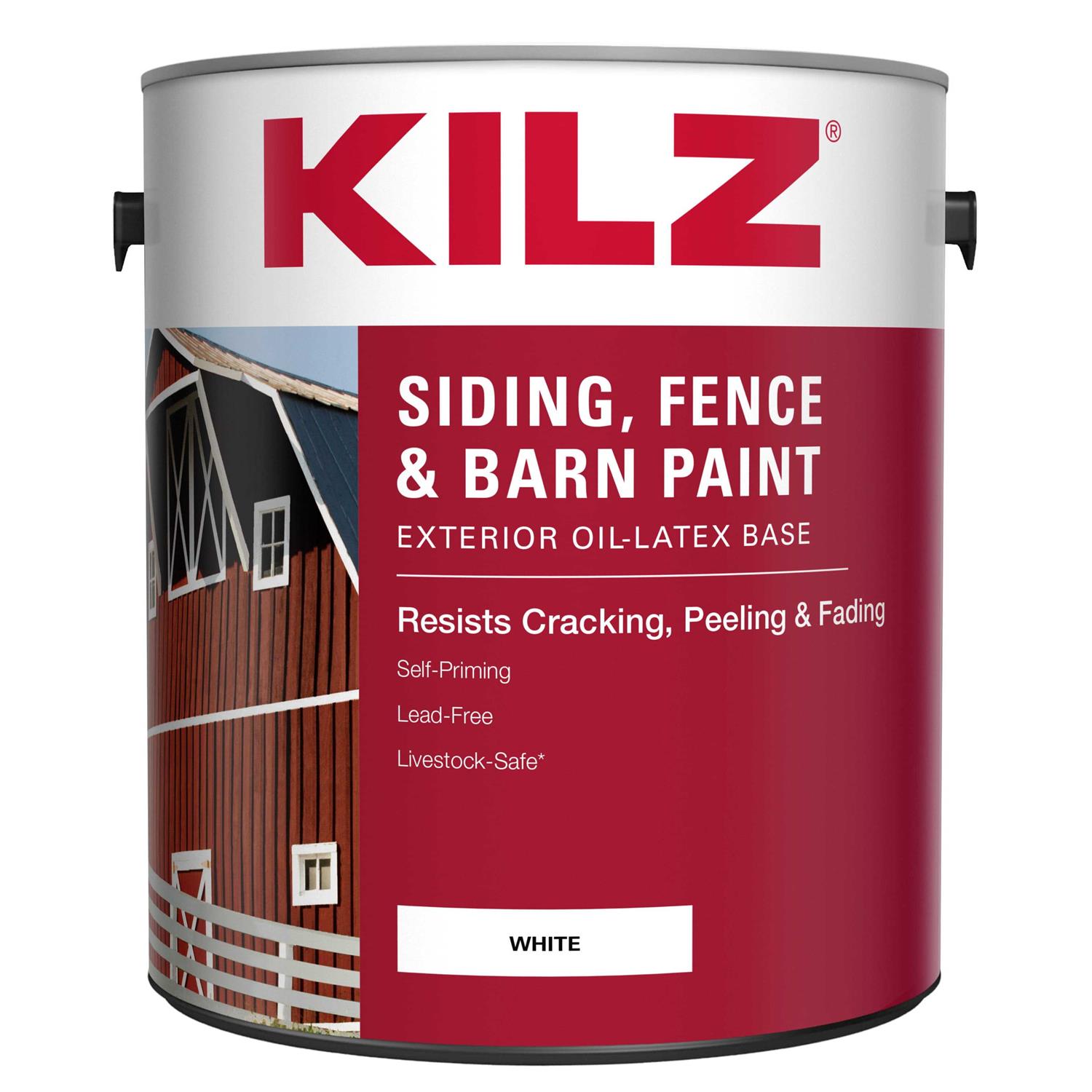 - This is a 1-gallon can of KILZ Exterior Siding, Fence, and Barn Paint in white. For use on properly prepared exterior vertical wood surfaces.