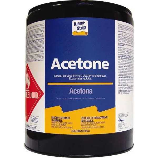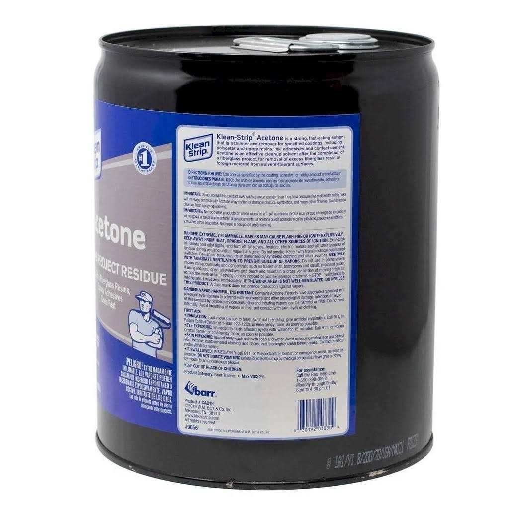 For Pro s and DIY ers, Klean-Strip is the leading brand of solvents, thinners, removers, and cleaners that are dependable for reliable results. Klean-Strip Acetone is a strong, fast-acting solvent that is a thinner and remover for specified coatings, including polyester and epoxy resins, ink, adhesives and contact cement. Acetone is an effective cleanup solvent after the completion of a fiberglass project, for removal of excess fiberglass resin or foreign material from solvent-tolerant surfaces. Keep out of reach of children.