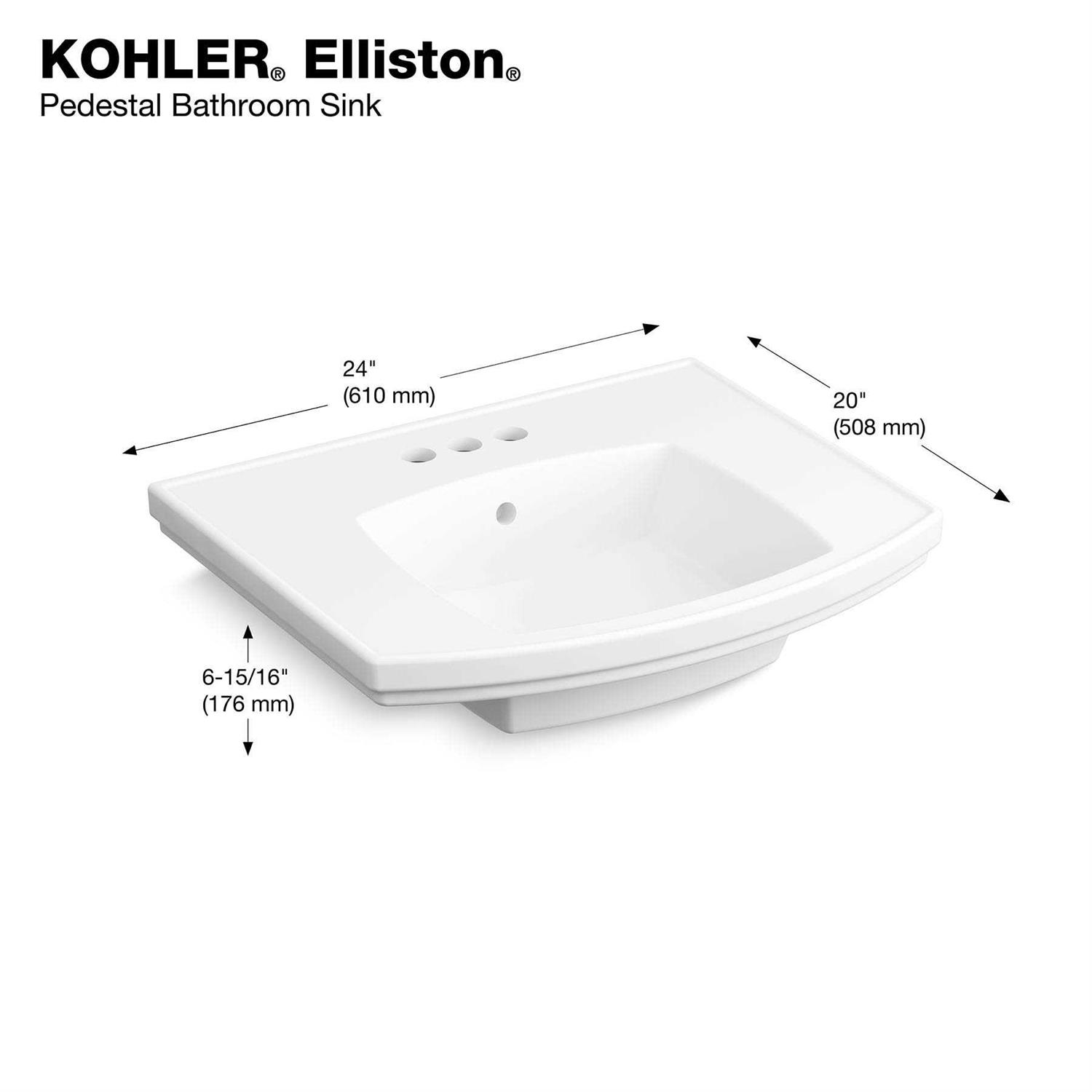 - Combines with the K-R6375 pedestal to create the K-R6376-4 Elliston pedestal sink.