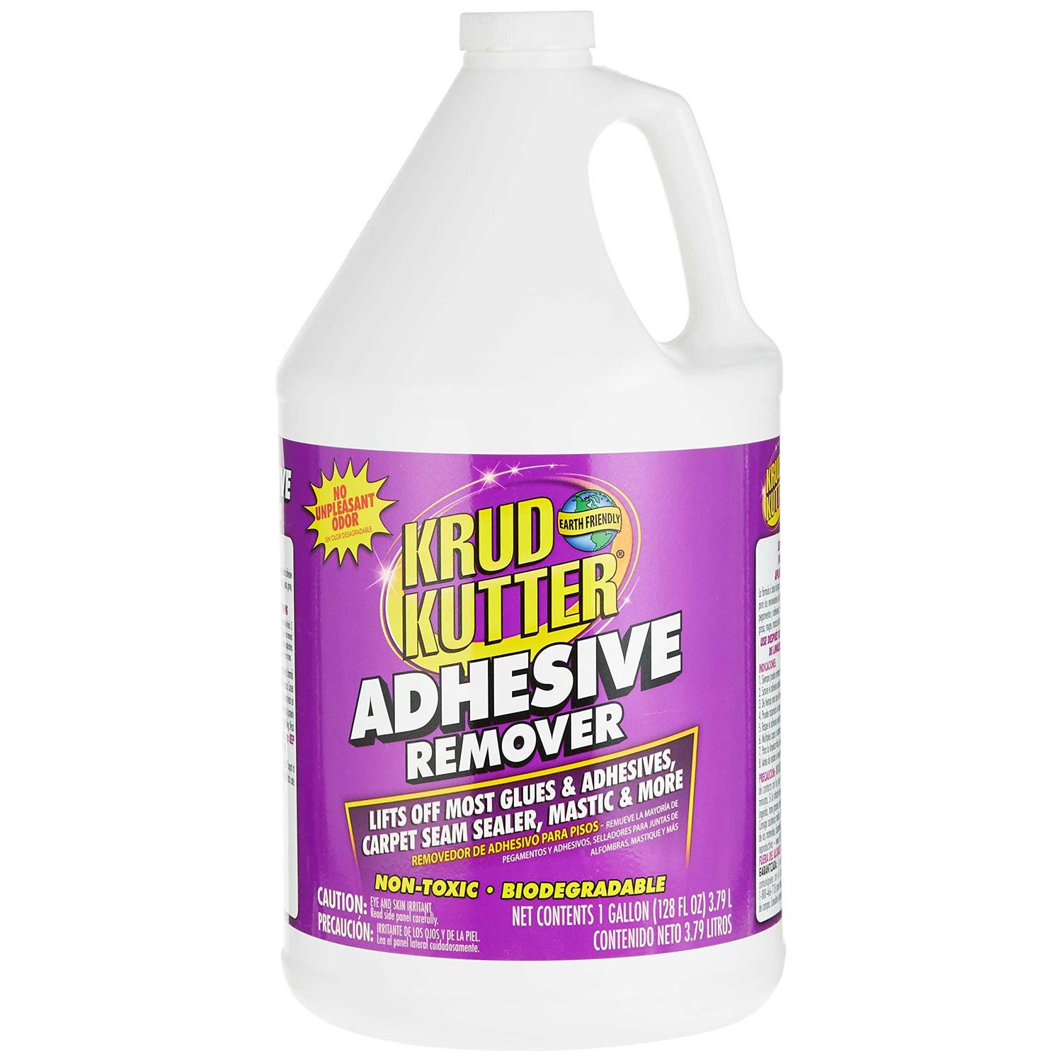 Krud Kutter 1 gal. Adhesive Remover is a biodegradable, water-based formula that is a safe, effective alternative to hazardous, solvent-based adhesive removers. Removes most glues and adhesives including carpet seam sealer and mastic. Easy to use formula has no harsh fumes, simply pour, spread, wait and scrape.