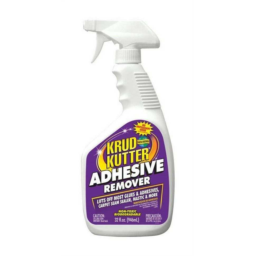 Krud Kutter adhesive remover is a water-based, biodegradable formula that is a safe, effective alternative to hazardous, solvent-based adhesive removers. Removes most glues and adhesives, carpet seam sealer, and mastic. Also removes dirt, grease, grime, heel marks, and floor wax. Not recommended for varnished surfaces.