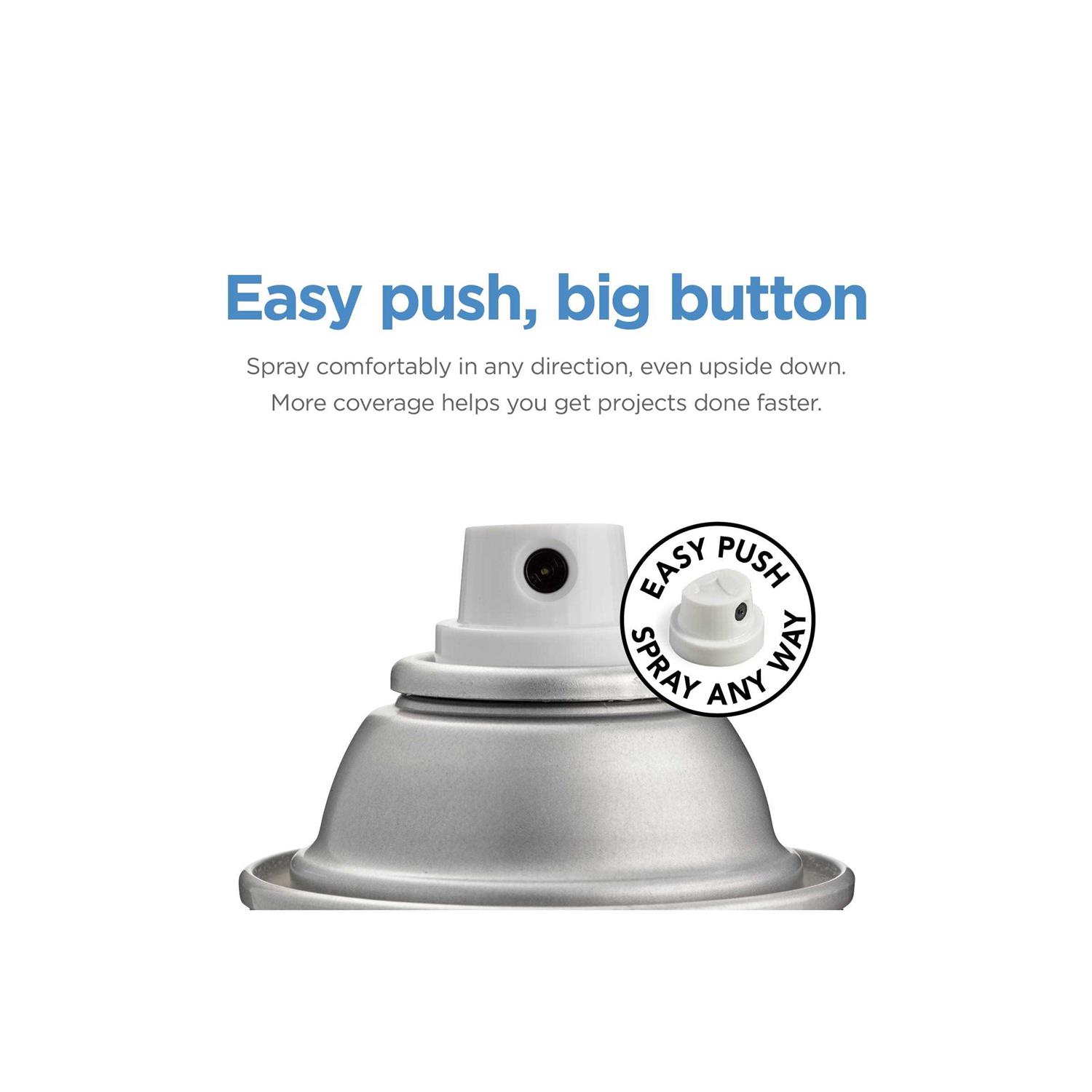 Krylon ColorMaxx spray paint provides brilliant, on-trend colors in a variety of sheens. This product has smooth application with added rust protection. The easy push big button tip provides the ability to spray at any angle for fast coverage to get your project done. Premium coverage and superior color with excellent adhesion and durability, Indoor/outdoor use with rust protection. Big button spray tip with spray any way capabilities. Dries in 10 minutes or less. For use on wood, metal, wicker, plastic, paper mache, glass, plaster/ceramic, fabric and paper.