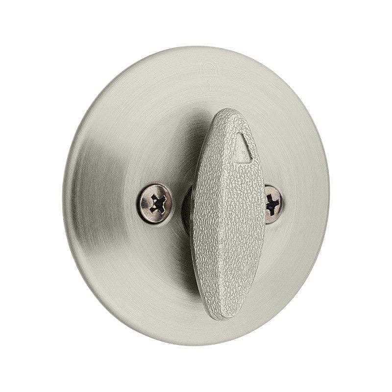 - Deadbolt operated by thumb turn on interior, no trim on exterior