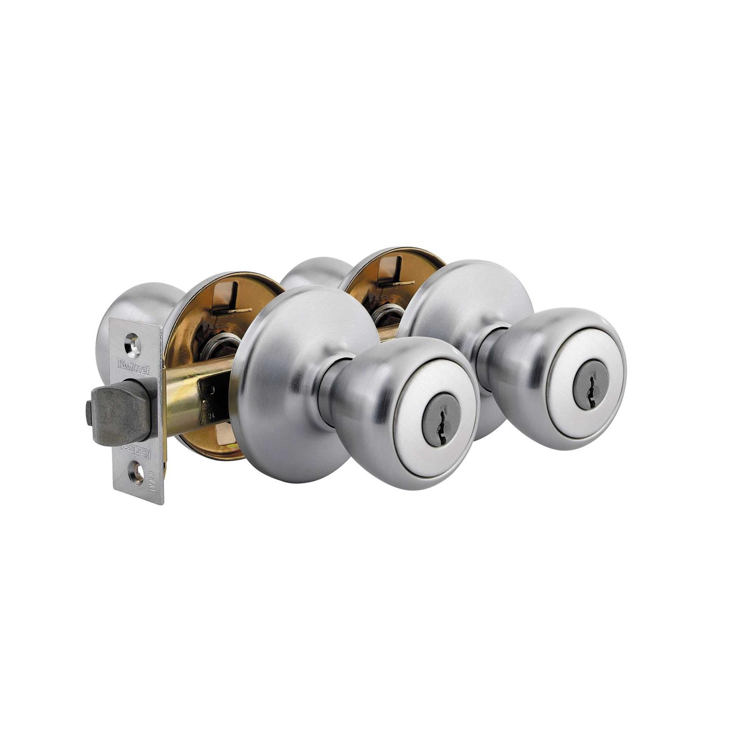 Tylo Satin Chrome Exterior Door Entry Knob and Single Cylinder Deadbolt Kwikset