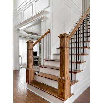 - Add detail and hide the transition from baluster to step with a flat shoe.