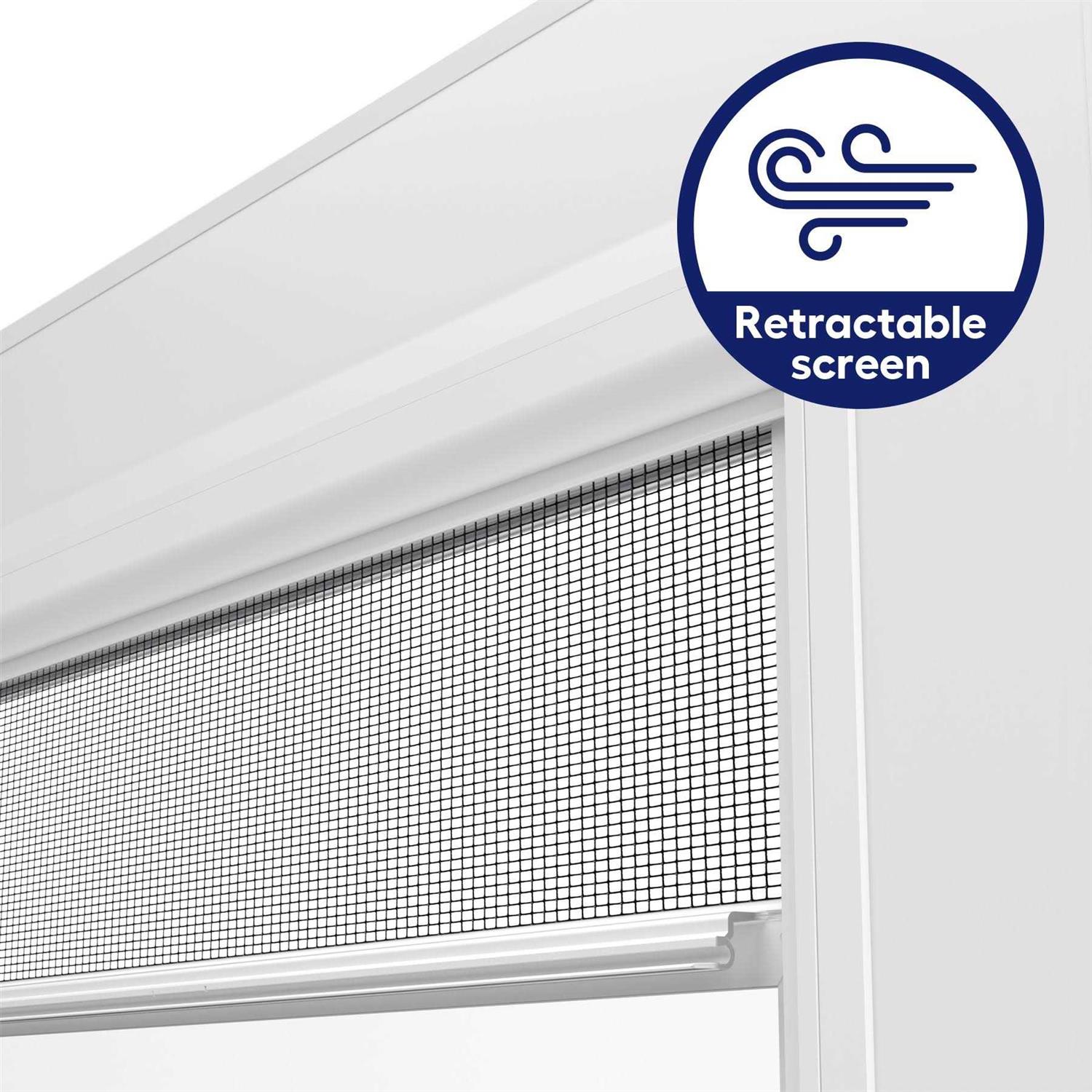 Retractable Screen Away design converts storm door to screen door, hiding the screen in a cassette at the top of the door. LARSON storm doors save energy by adding an insulating barrier to your entry, natural sun light and ventilation control. Brushed nickel Secure Lock ; built-in latch with matching interior and exterior levers. DuraTech surface over solid core offers a maintenance-free finish with age and weather protection against scratches and dents. Color matched adjustable-speed closer included. Adjustable bottom sweep adjusts to uneven sills to seal out harsh weather. Heavy duty weather stripping helps seal out harsh weather and drafts. EasyHang installation is fast and easy, offering a no cutting system with mounting rail extenders for an exact fit every time. REVERSA-HINGE for right or left mounts.