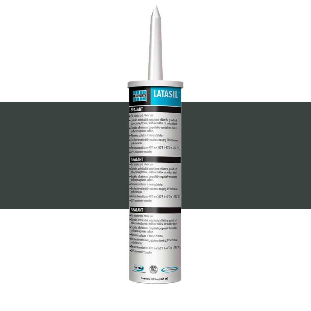 Easy to smooth and tool Excellent for masonry construction Can be used where ceramic tile abuts glass and window framing Choose from all 40 LATICRETE standard sealant colors (plus clear) or custom colors through the AnyColor color matching program Conforms to ASTM C-794 Adhesion Properties Latasil sealant is a high performance, one component, neutral cure, 100% silicone sealant designed for ceramic tile & stone applications. Color options: Choose from 40 standard sealant colors (plus clear silicone), top competitor colors and custom silicone sealant colors in our AnyColor color matching program.