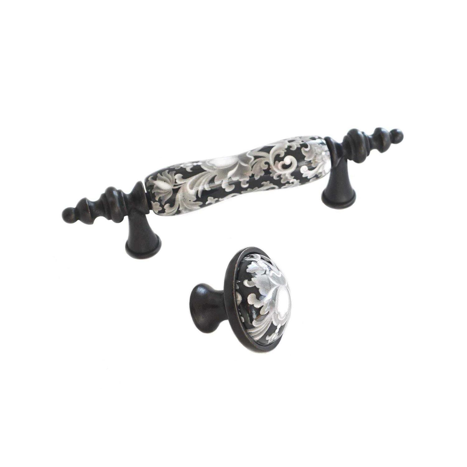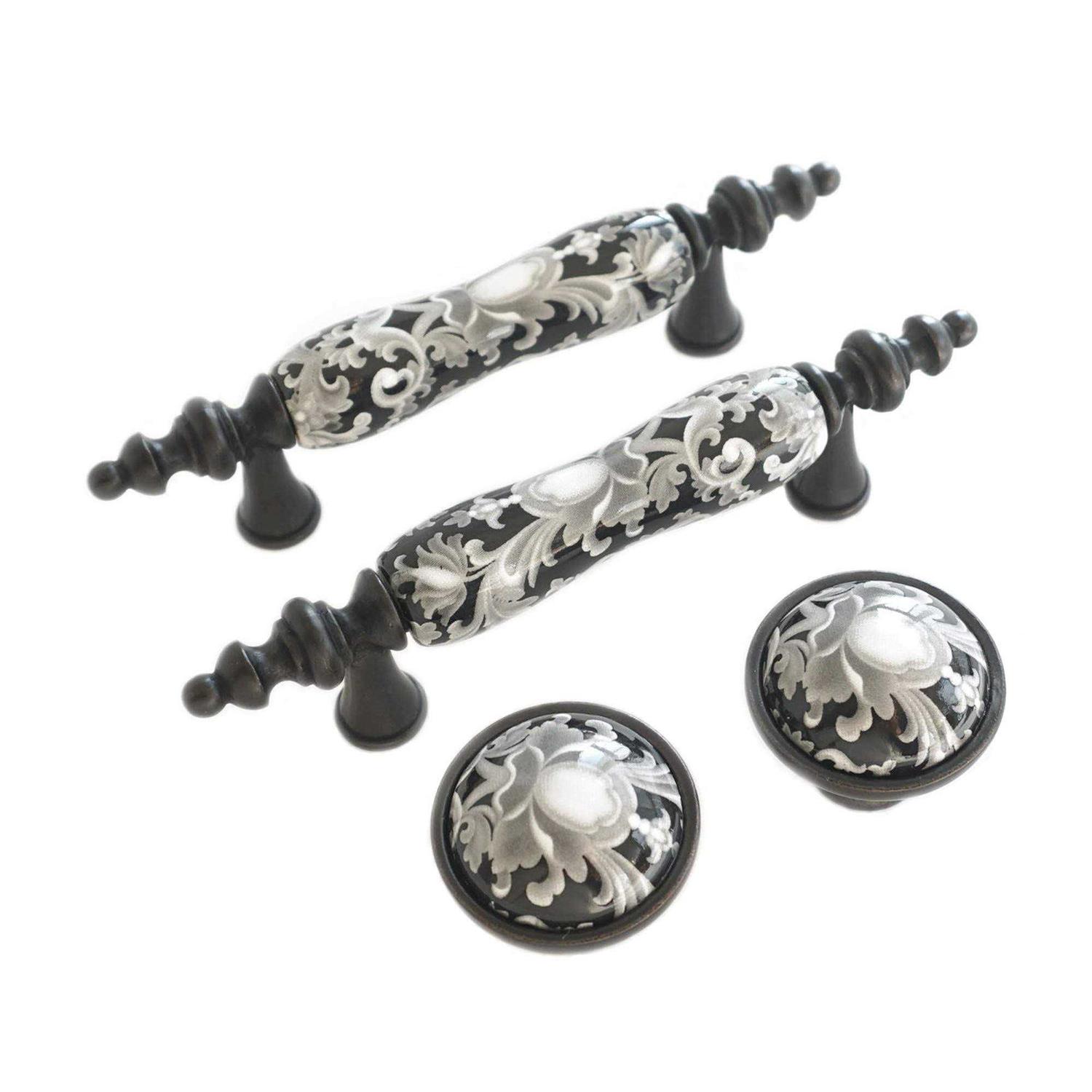 LBFEEL Ceramic Drawer Pulls Handle Black White Dresser Knob for Kitchen Cabinet Knob 4Pack 3.0″ Centers Door Furniture Hardware 76mm (3″ Hole
