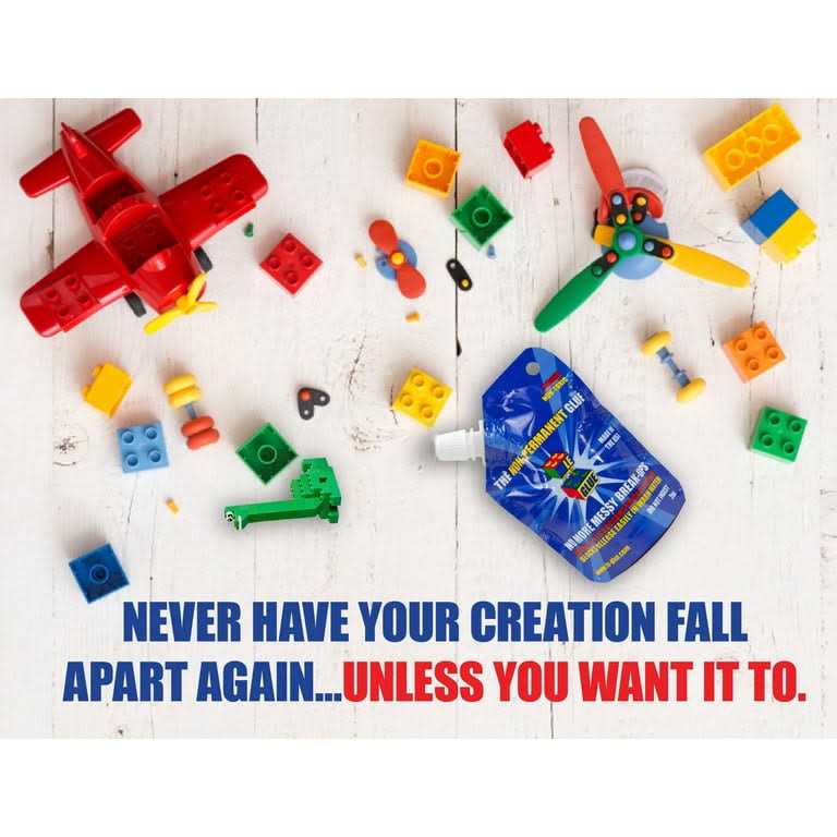 Do you Build with Bricks and Blocks but hate when they fall apart after all your hard work? If you are a parent you know kids get very upset when they build something and it falls apart before they can play with it for the first time. Using any kind of super glue would simply ruin the bricks costing a lot of money for replacement, or worst case, your kids end up with bricks stuck to their face and fingertips, been there. Le-Glue is a Temporary Glue that allows you to stick your bricks together and stay together so one can actually play with the creations they build. Gone are the days of wheels rolling across the room or stepping on a piece (barefoot of course) causing you to scream in pain. Le-Glue is the solution. Best of all, when you want to be creative again, simply soak the built piece in warm water and they will come apart like new again. Le-Glue is made with all Natural food grade ingredients. It is safe to use and Non-Toxic. It has been laboratory tested and is proven to be 10x stronger than bricks alone. If you are a Professional Brick Builder; Le-Glue allows you to build like never before. As a super strong, yet Temporary Glue, you can build sections of structures, take them down, and rebuild until you get it just right, something impossible until now. A large build can use thousands of pieces and cost a lot of money to create. You can’t afford to buy new bricks every time inspiration strikes, but you can get Le-Glue now and let your imagination run free. There is no other product like Le-Glue on the Market. Stop picking up the falling pieces and start making magic happen.