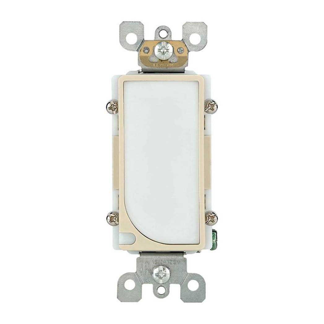 Leviton Decora Combination switch in ivory color features Impact-resistant face and body for durability/protection. It is rated at 3.7 milli-Amps, 1 Watt, 120 VAC and 60 Hz. Switch features sensor LEDs that turns on and off automatically in switch/guide light and has 6-Inch distance to light. It is ideal for residential use, hallways or stairways. Switch has wallbox mounting for convenient installation and temperature rating of -40 to 120 deg C. It comes with four lix light output. Grounding switch is has back/side wired connection and is rated at NEMA 5-15R. Switch is UL listed and CSA certified.