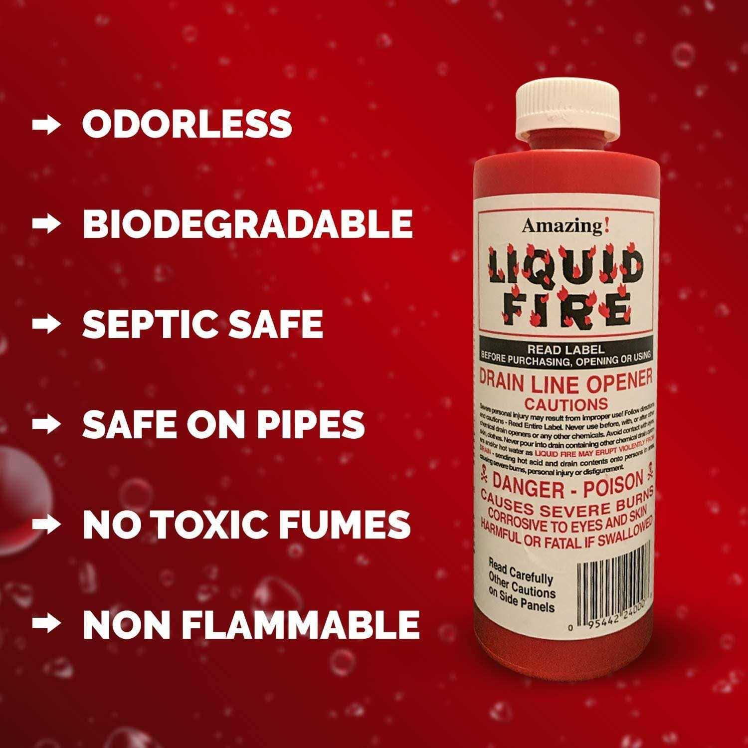 - As you Pour Liquid Fire into clogged or slow running drain, it reacts instantly creating heat