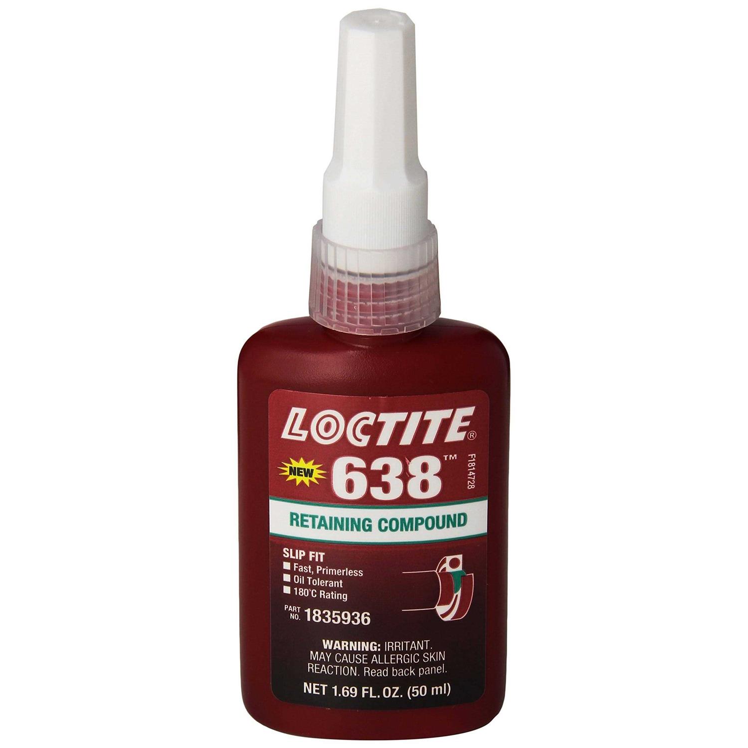 Loctite 638 green retaining compound with a 24 hr cure time. Has a high retaining strength. Delivers great performance with a shear strength of 4500 psi. Minimum to maximum operating temperatures are -65F to +300F. Comes in a 50 ml Bottle. The IDH number for this item is 1835936.