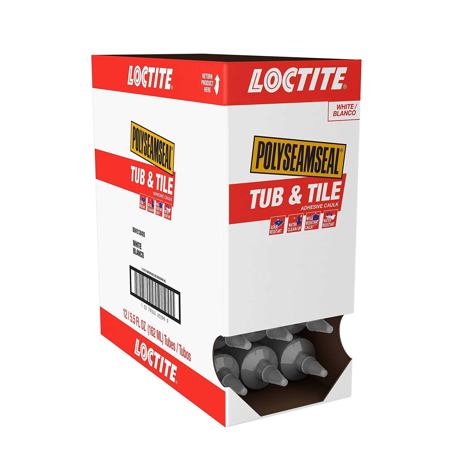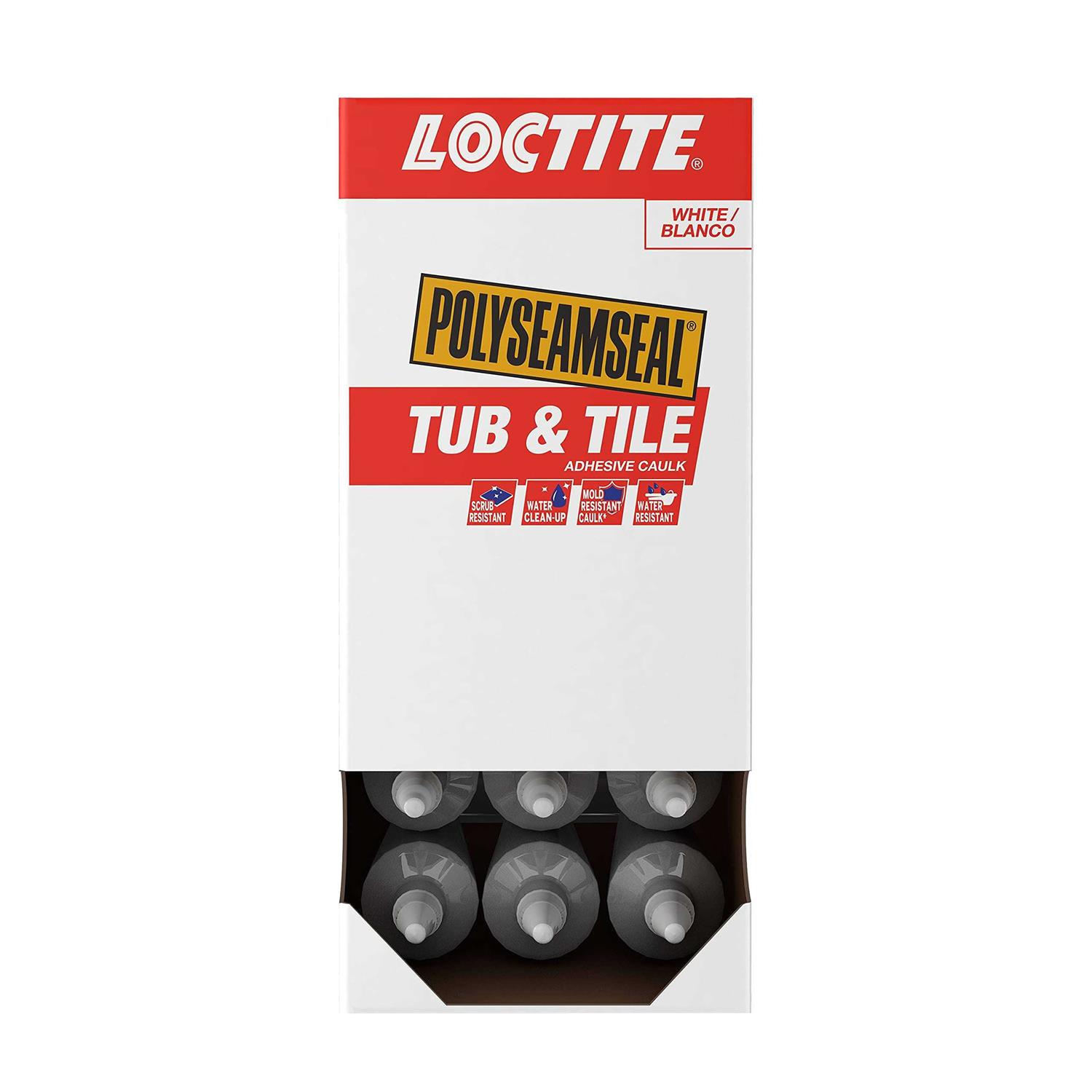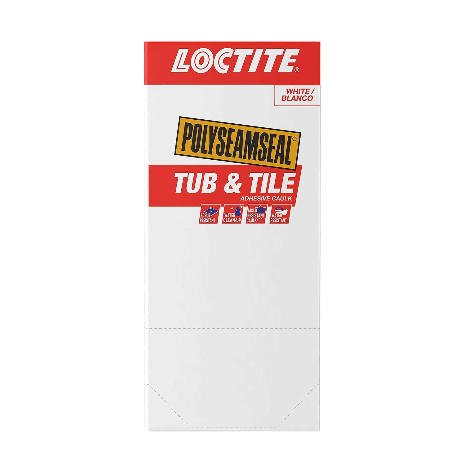 Loctite POLYSEAMSEAL tub and tile adhesive caulk is formulated for sealing projects in kitchens and bathrooms. The seal and bond technology provides increased durability for a long-lasting, mold-and mildew-resistant seal. Loctite POLYSEAMSEAL tub and tile resists color change and abrasion to harsh chemical cleaners. This easy-to-use acrylic-based sealant remains flexible and watertight to provide durability and longevity. It is paintable and can be easily cleaned with soap and water. Contains a biocide that helps inhibit mold and mildew growth on caulk surface. Contains a biocide that helps inhibit mold and mildew growth on caulk surface. Permanently flexible and durable. Long-lasting, professional finish. Sealant is paintable with a latex-based paint. Uncured adhesive cleans up easily with soap and water. Ideal for humid or steamy areas when cured. Low-odor, non-flammable.