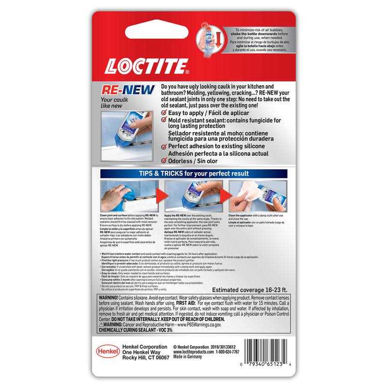Loctite RE-NEW is an innovative solution for repairing ugly looking caulk in your kitchen and bathroom. Easily repair molding, yellowing and cracking old sealant joints in only one-step. No need to take out the old sealant, just pass over the existing sealant with Loctite RE-NEW specialty silicone for a new long lasting and durable seal. As easy as using a highlighter with professional-like quality. Loctite RE-NEW kills, repels, and prevents mold from growing once properly applied.