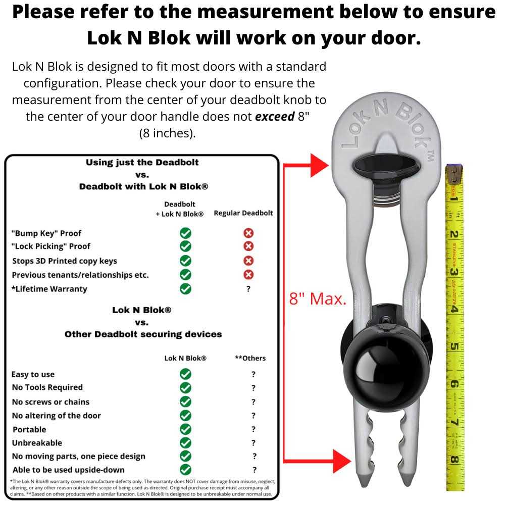 - Lok N Blok requires No Tools or altering of your door ️FITS MOST ALL DOORS WITH A STANDARD DEADBOLT / DOOR HANDLE CONFIGURATION