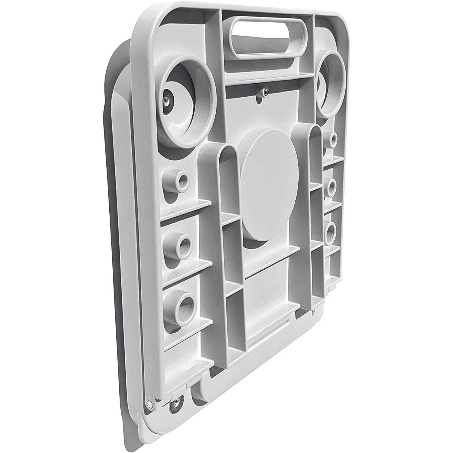 The NEW Injection Molded MagBench Utility model is molded with a High Strength Polycarbonate/ABS plastic blend making it lighter and even stronger! The Utility model is designed with two large holes for drills, wrenches, and large tools, and six smaller holes to hold screw drivers and other hand tools. There is also a recessed area in the center to retain screws fittings and other hardware. The MagBench Utility Workstation can be installed on any steel surface in seconds with just two simple steps; place the MagBench Workstation against the steel surface, fold down the front panel, and you’re ready to work!