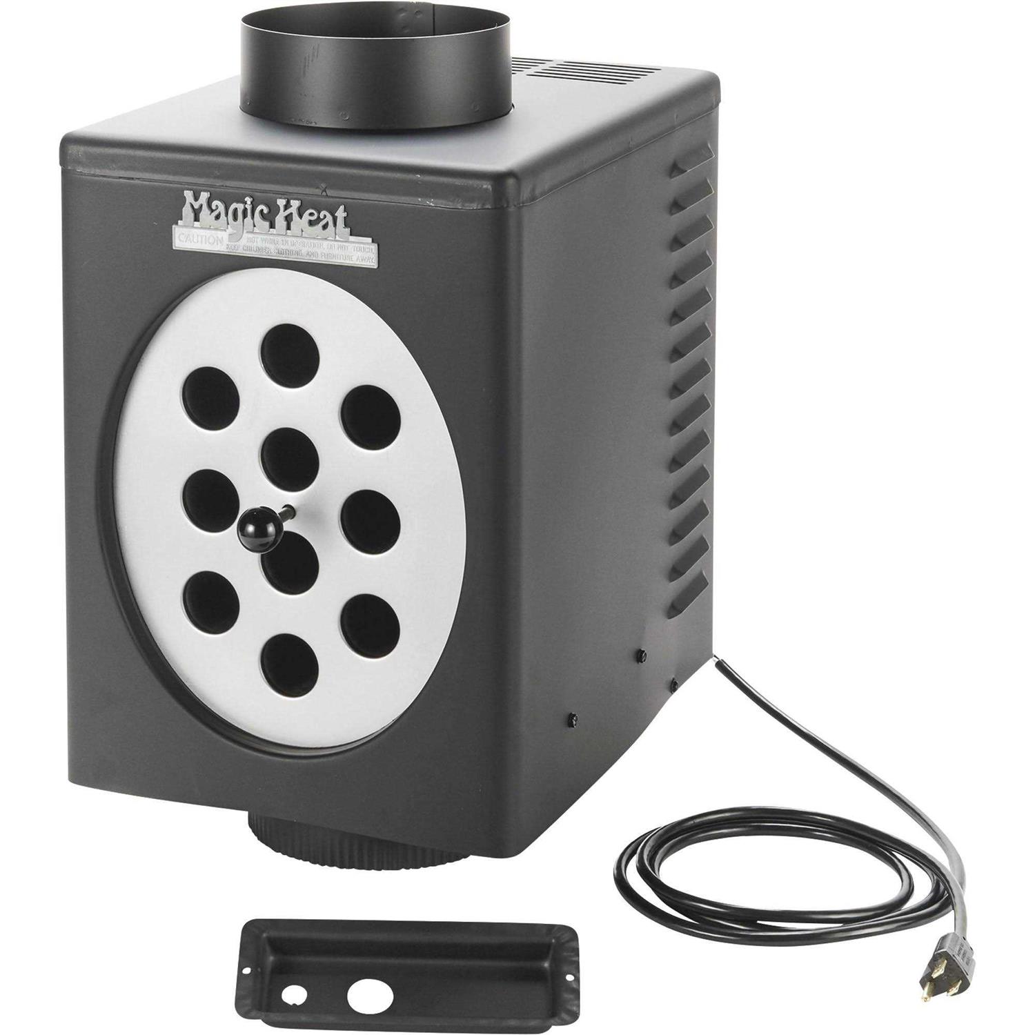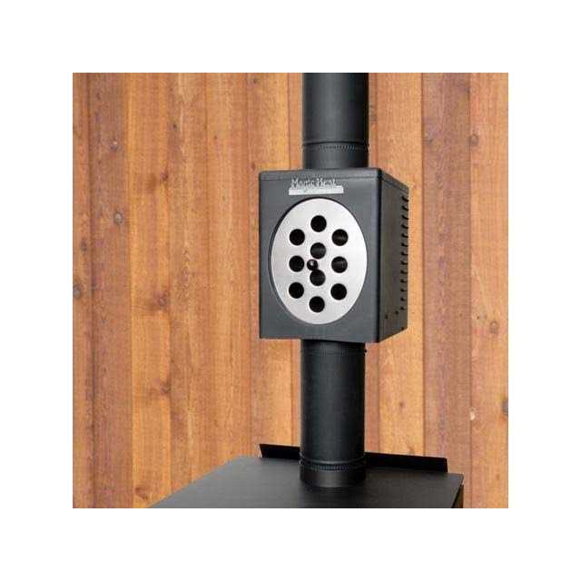 Magic Heat is the only UL listed heat reclaimer on the market. Magic Heat reclaims up to 30 percent of lost heat from your heating appliance and distributes it into your home using only .31 amp of power, roughly equivalent to a 40 watt light bulb. Magic Heat is designed for heating appliances with inside flue temperatures exceeding 350 degrees and surface temperatures of the single wall pipe below the Magic Heat exceeding 280 degrees. The bottom crimp design makes this unit ideal for wood burning heating applications by containing any creosote within the chimney. A toggle switch allows the 225 CFM fan to operate in two modes. Either run continuously or a preset thermostat automatically turns the blower fan on when the Magic Heat casing reaches 150 degrees and off at 120 degrees. Magic Heat is easy to install and must be installed between 12 and 24 inches from the appliance flue outlet using a single wall connector pipe. Magic Heat is available in 6, 7 and 8 pipe diameters for wood ,oil, coal, or natural gas burning heating appliances. Manufactured in the USA.