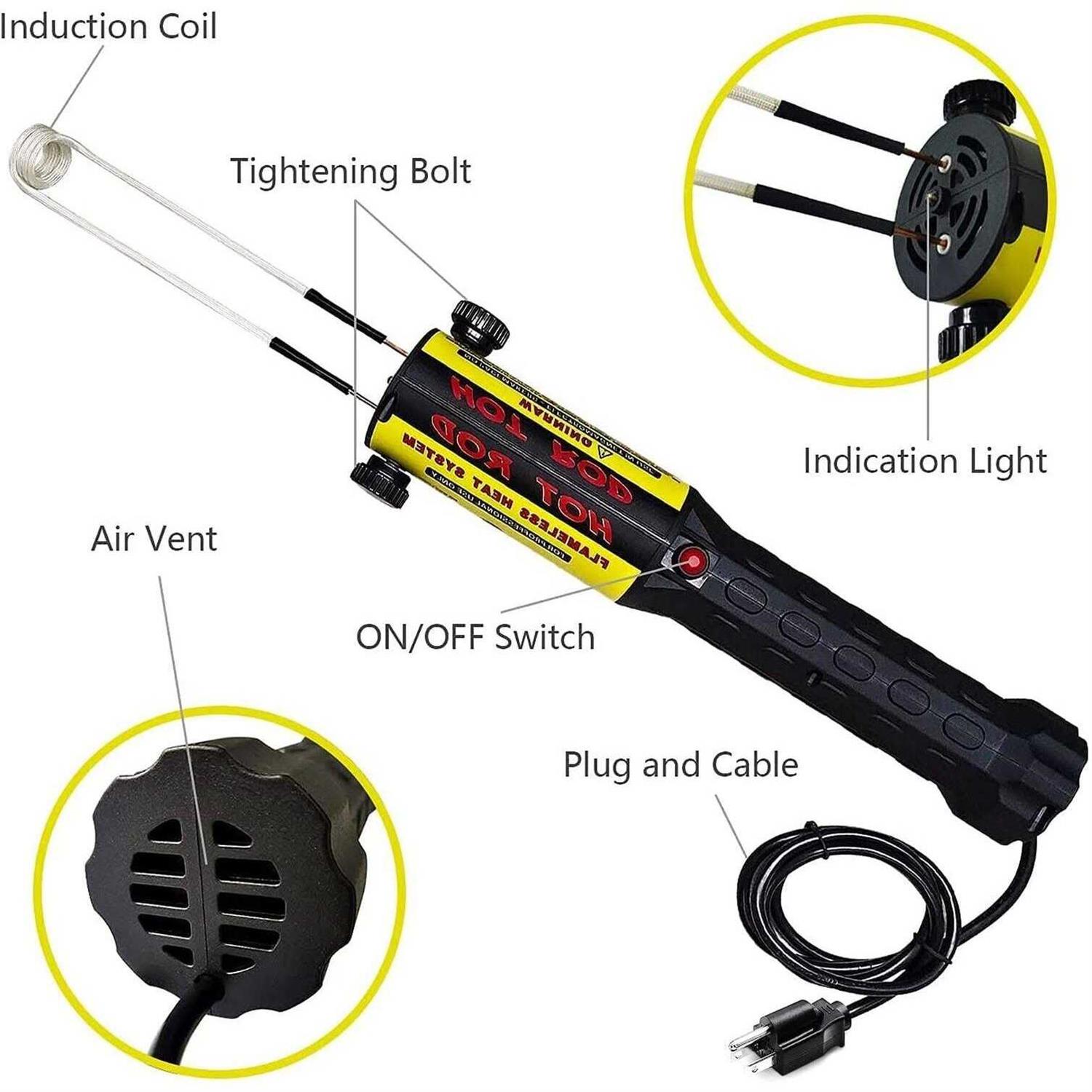 Reinforced heat stabilized thermoplastic housing provides for increased durability inside and outside. [Wide Application] The magnetic induction heater mainly used for heating nuts and rusty screws to loosen them.