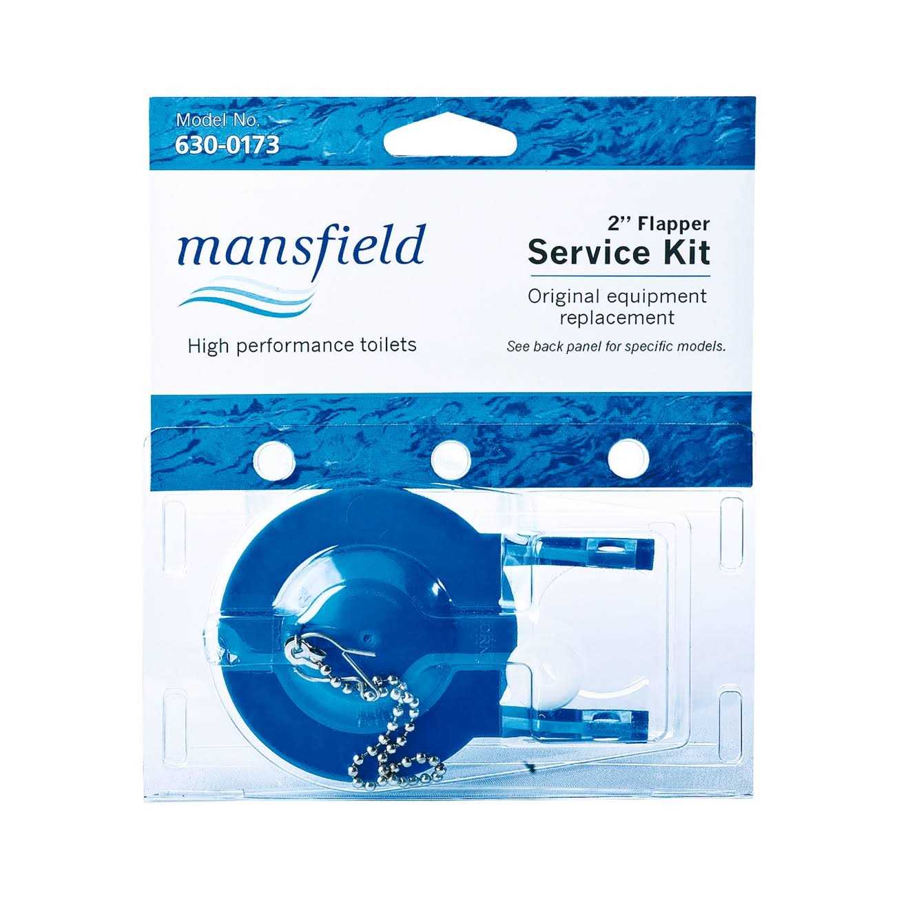 Mansfield flapper kit fits several models and is the replacement flapper for Mancessa toilets with the rubber strap instead of a chain. Measures 3 in. across. The package has a card to let you know which insert to use in tour Mansfield toilet model. It is flexible rubber and is easily installed buy putting the rubber hoop over the ears on the side of the flush valve. The Mansfield 630-0173 flapper does measure 3 inches across but is classified as a 2 inch flapper because the flush valve is 2 inches in diameter.