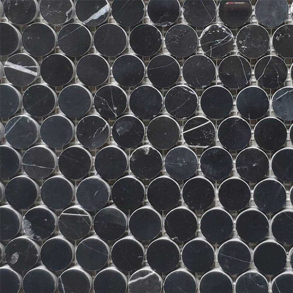 Nero Marquina Black Marble Penny Round Mosaic Tile Honed 3/4 inch