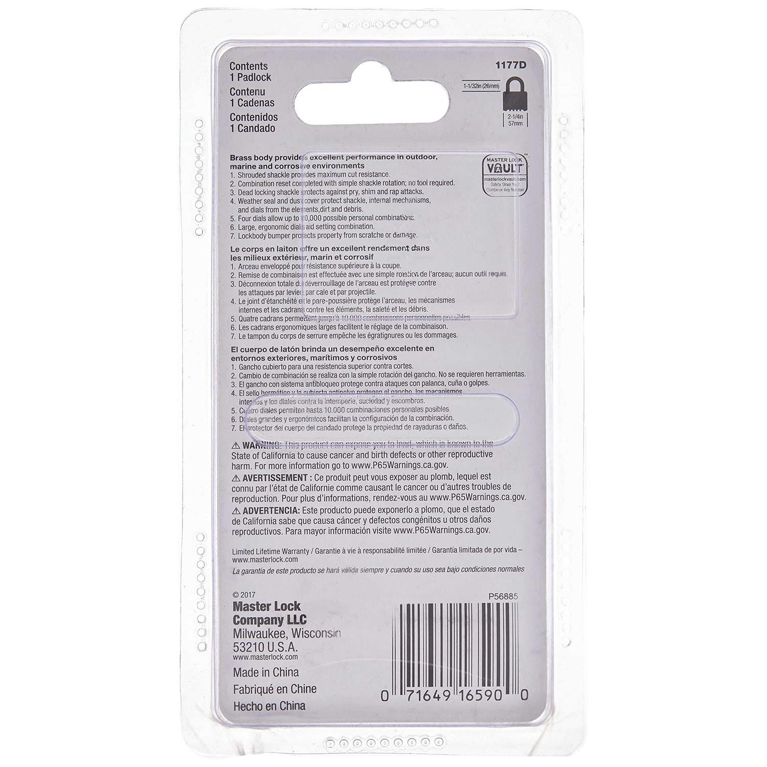 Master Lock 1177 Combination Padlock, Bottom, 4 Dial, Brass