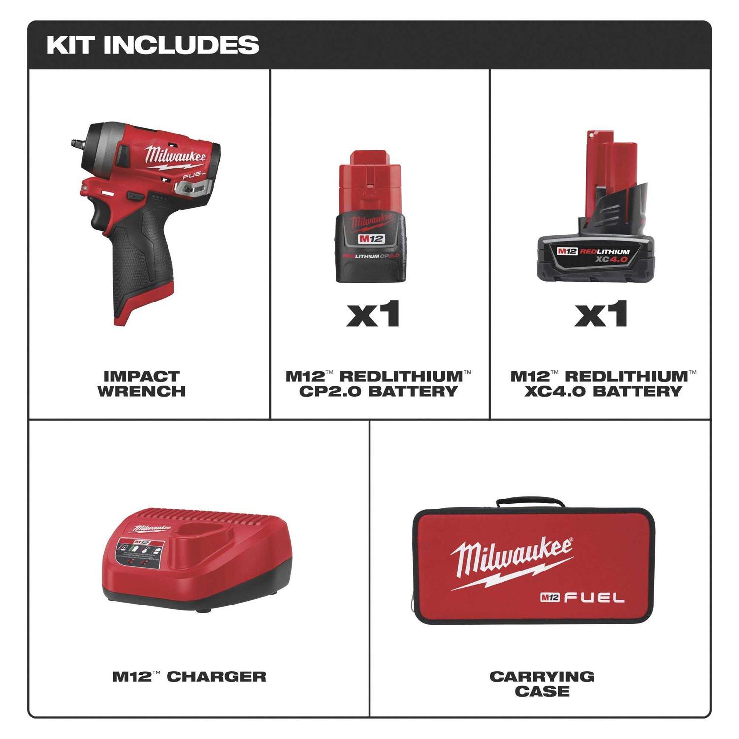 Milwaukee 2552-22 M12 Fuel 1/4″ Stubby Impact Wrench Kit