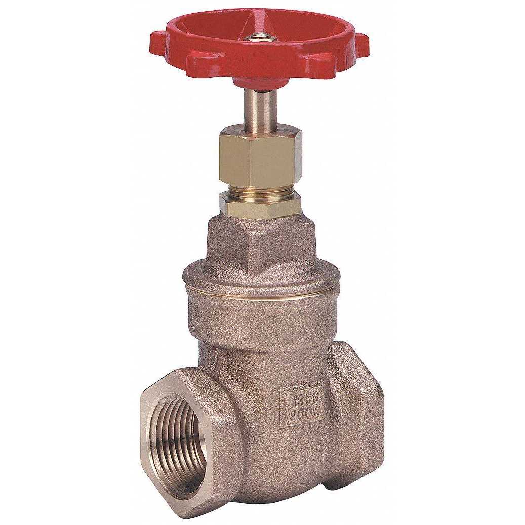Bronze Gate ValvesValves act as a positive shutoff and can be used fully open or fully closed. Bronze disc, wedge, stem, and bonnet. Full port. For use in steam, water, and compressed air applications.Meet MSS SP-80 standards.Class 125 – Max. pressure: 125 psi steam; 200 psi WOG (FNPT), 200 psi nonshock CWP (solder) Max. temp.: 406°F Gate Valve, Class 125, 1-1/2 In., FNPT