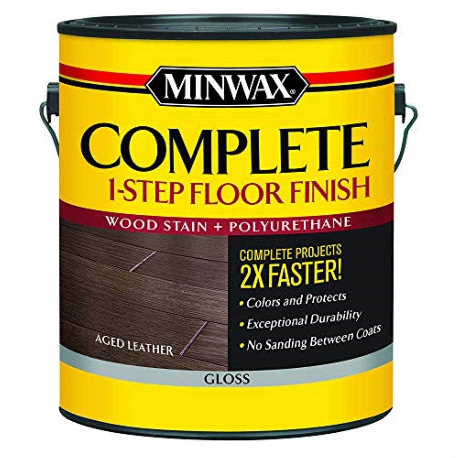Complete 1-Step Floor Finish allows you to change the color of your hardwood floors without sanding down to bare wood. Also, no need to sand between coats. You can finish your floor project in one day. Each coat of this product s advanced polyurethane formula adds beautiful color and delivers outstanding protection against foot traffic.