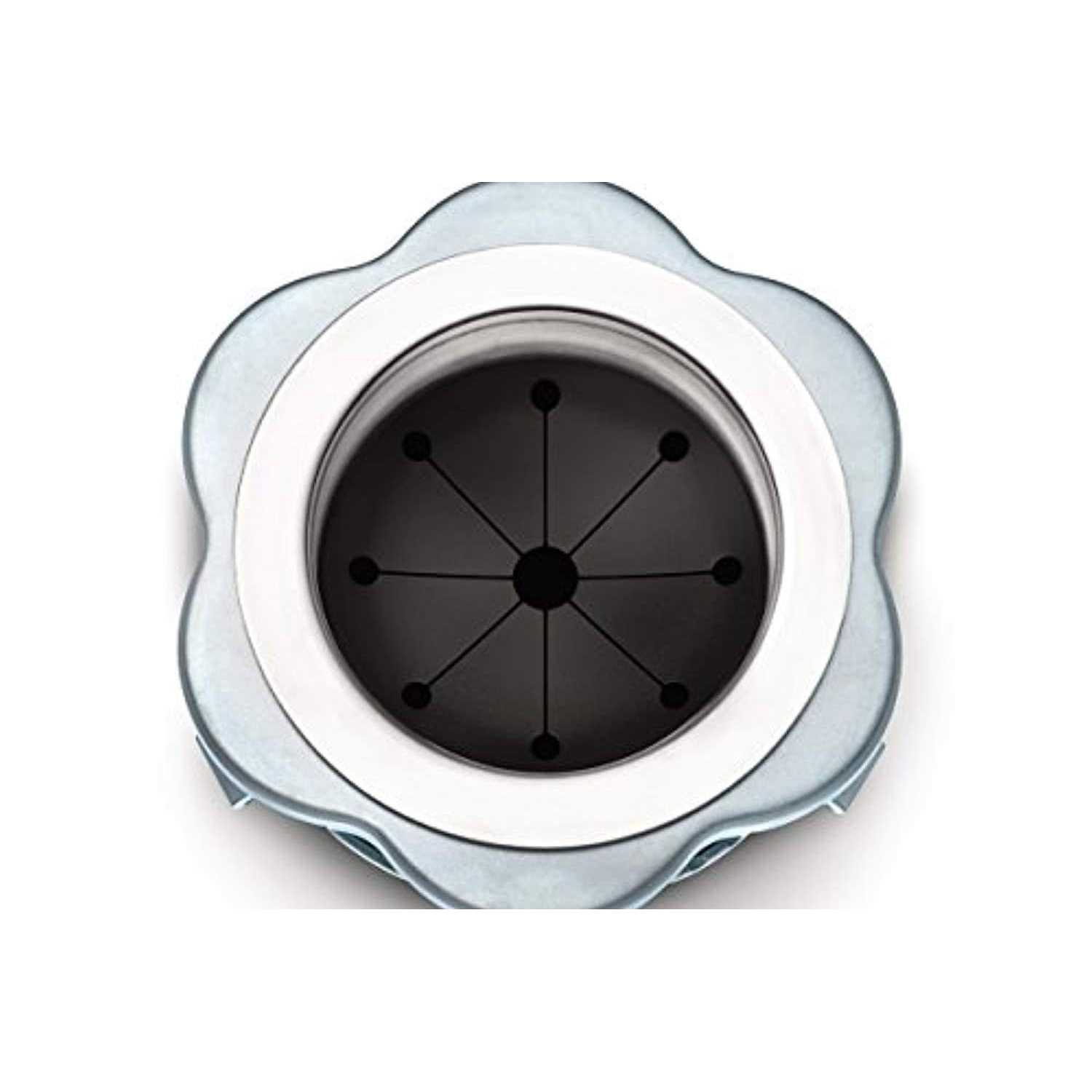 - Removable splash guard prevents any unwanted items from the sink from going down the drain or into the disposal