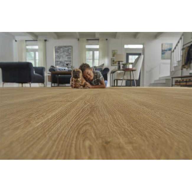 Mohawk’s Premium Laminate Flooring, RevWood Premier Palm City, a 8.34″ x 54.34″ x 12 mm laminate plank with a locking system. RevWood is 4 times more scratch resistant than other leading laminated wood products. WetProtect is full-coverage waterproof protection. RevWood combines the beauty of hardwood with the toughness of laminate. Made in the USA!