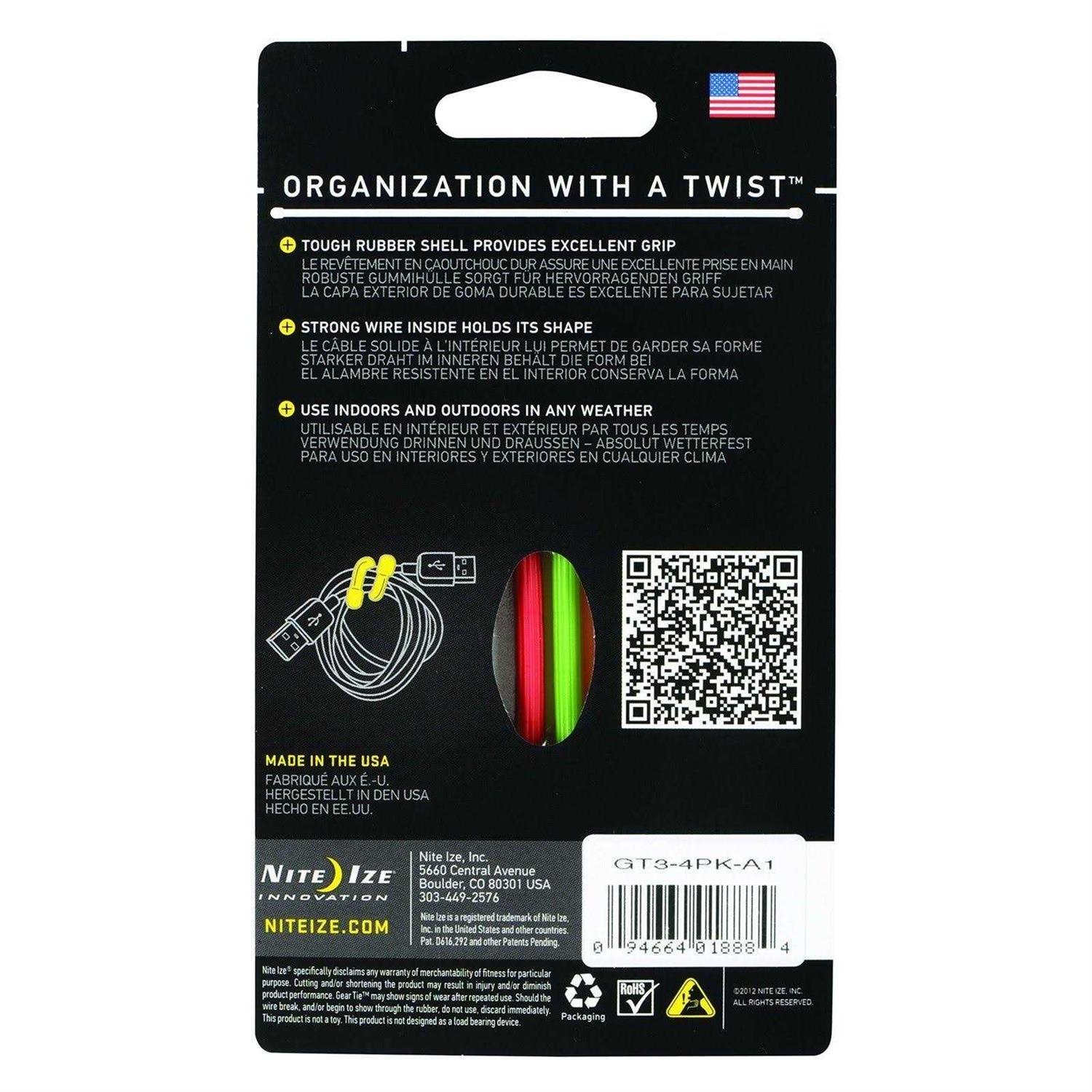 Nite Ize Gear Tie Twist Tie, Rubber, Reusable, Original – 4 ties