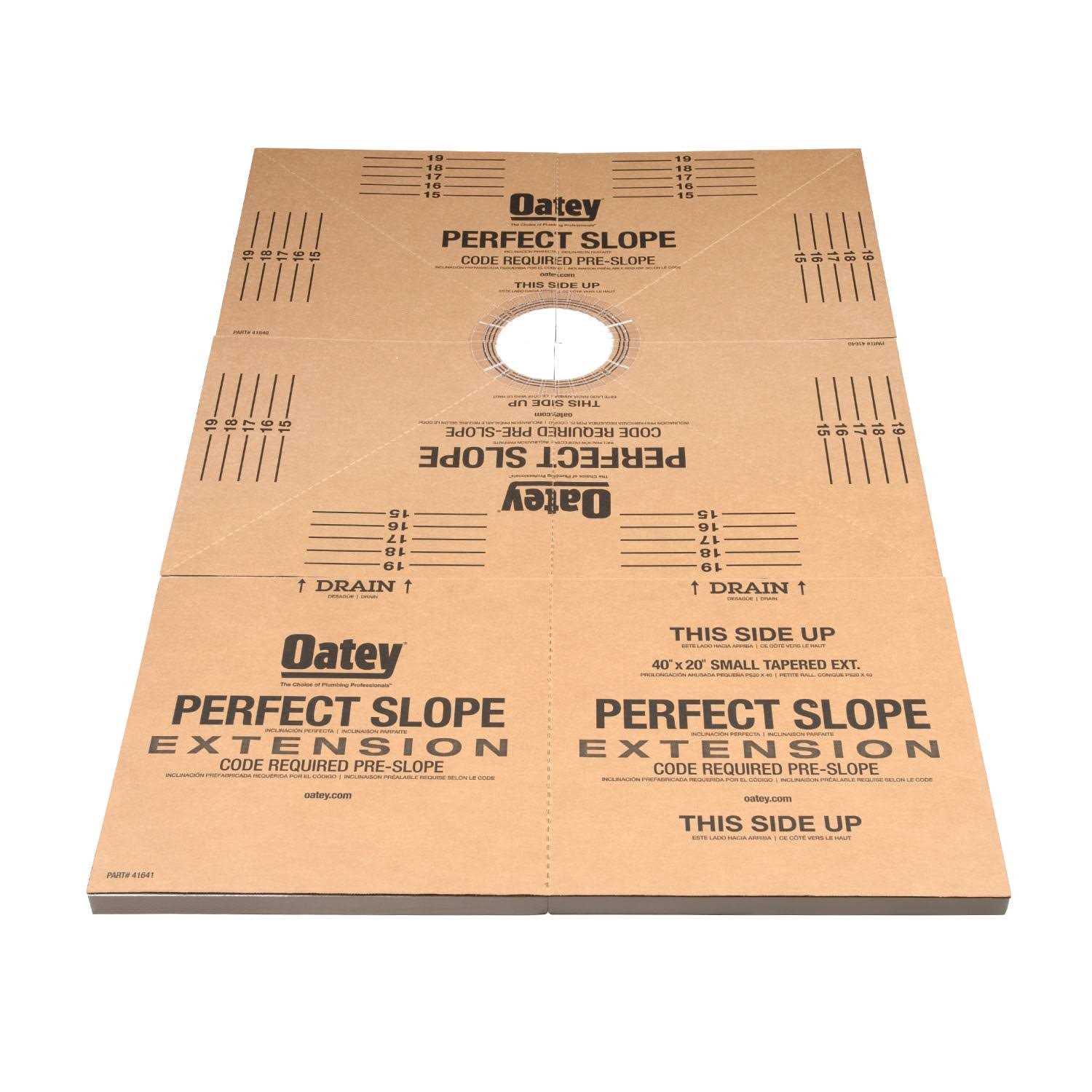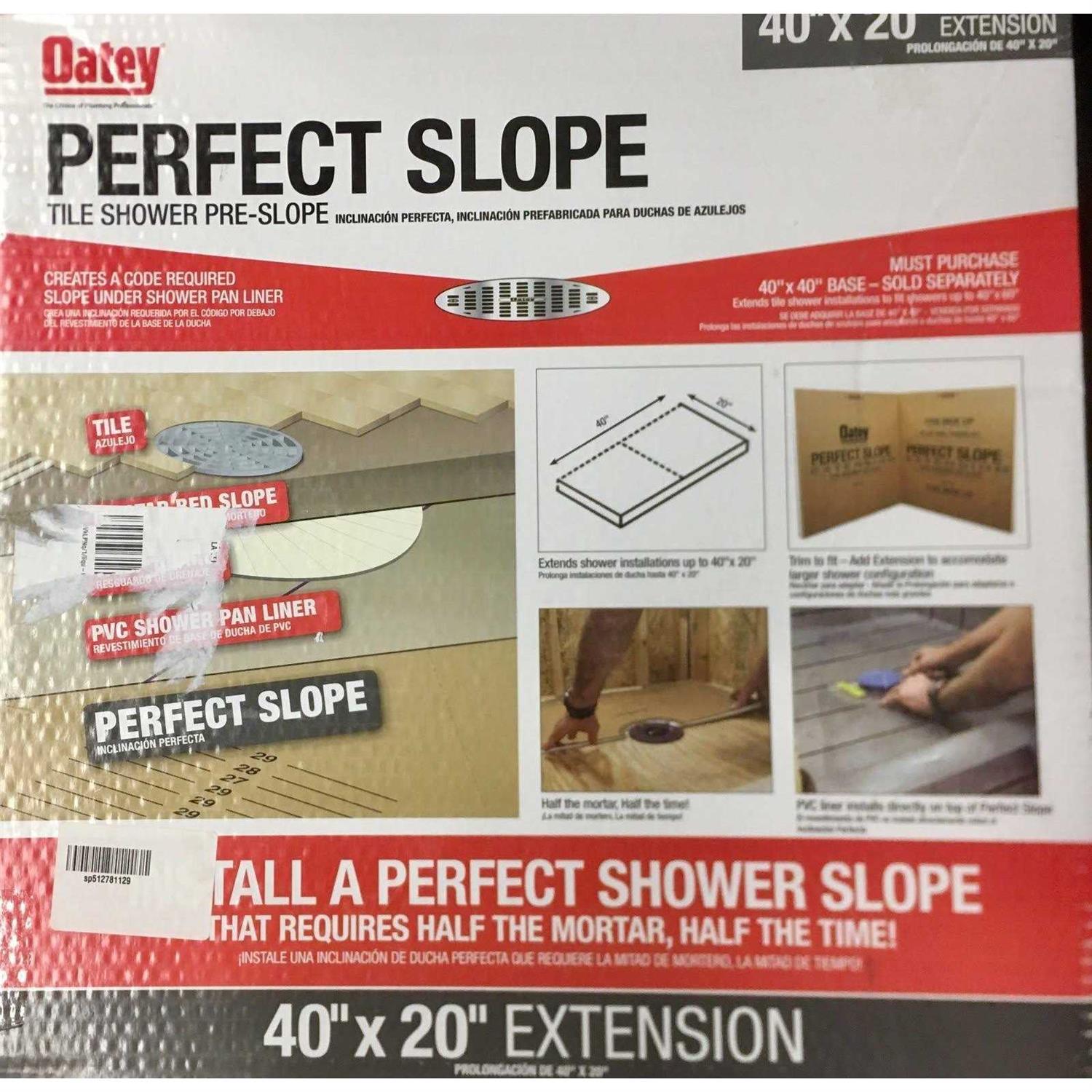 For use on tile shower installations, add 40 In x 20 In extension to accommodate larger shower configurations up to 40 In x 60 In. Made of expandable polystyrene and fiber board. Creates a code required 1/4 In slope under shower pan liner. Easy to extend or trim during custom shower installations. Replaces the pre-sloped mortar bed. Installation requires the Oatey 40 In x 40 In base, available for purchase separately.