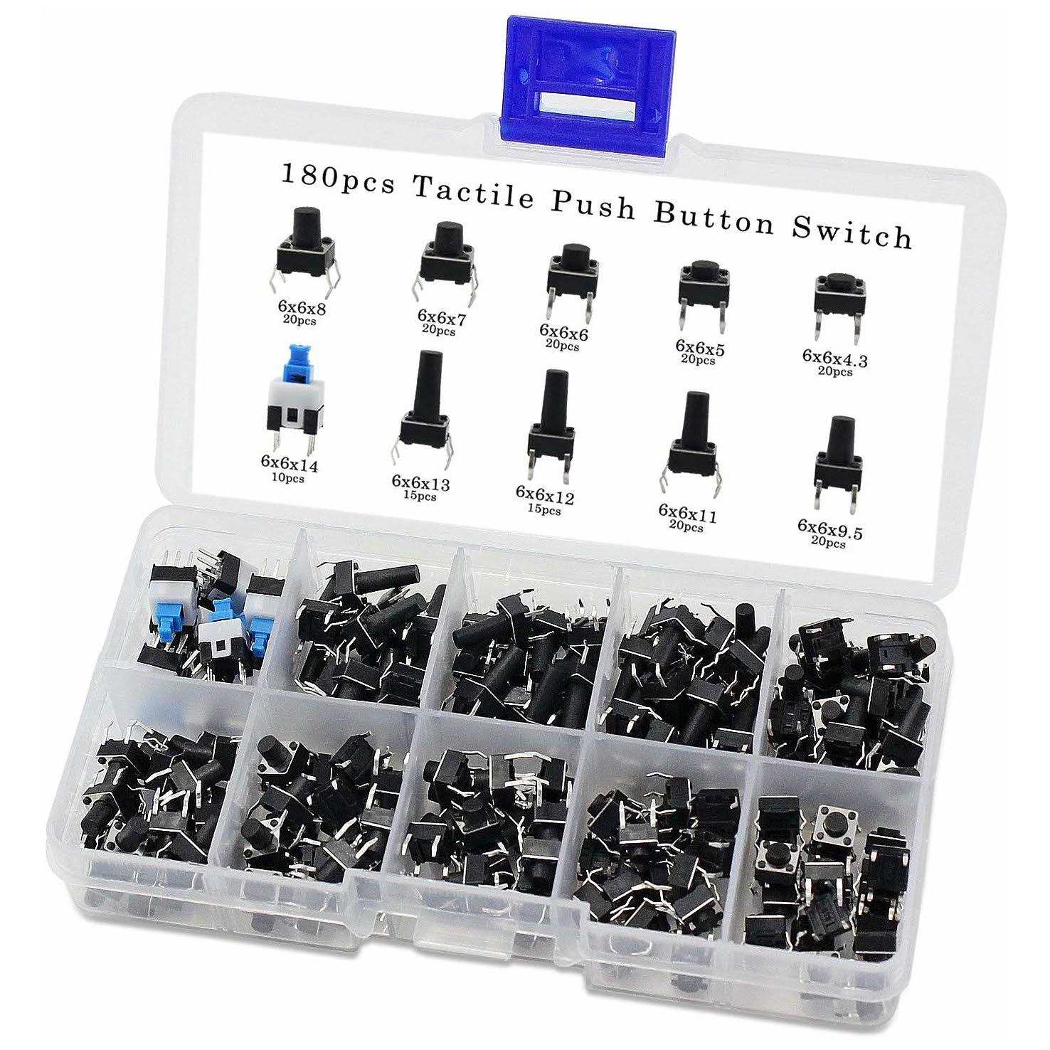 - 3. Package includes 10 values tact push button switch, total 180PCS.