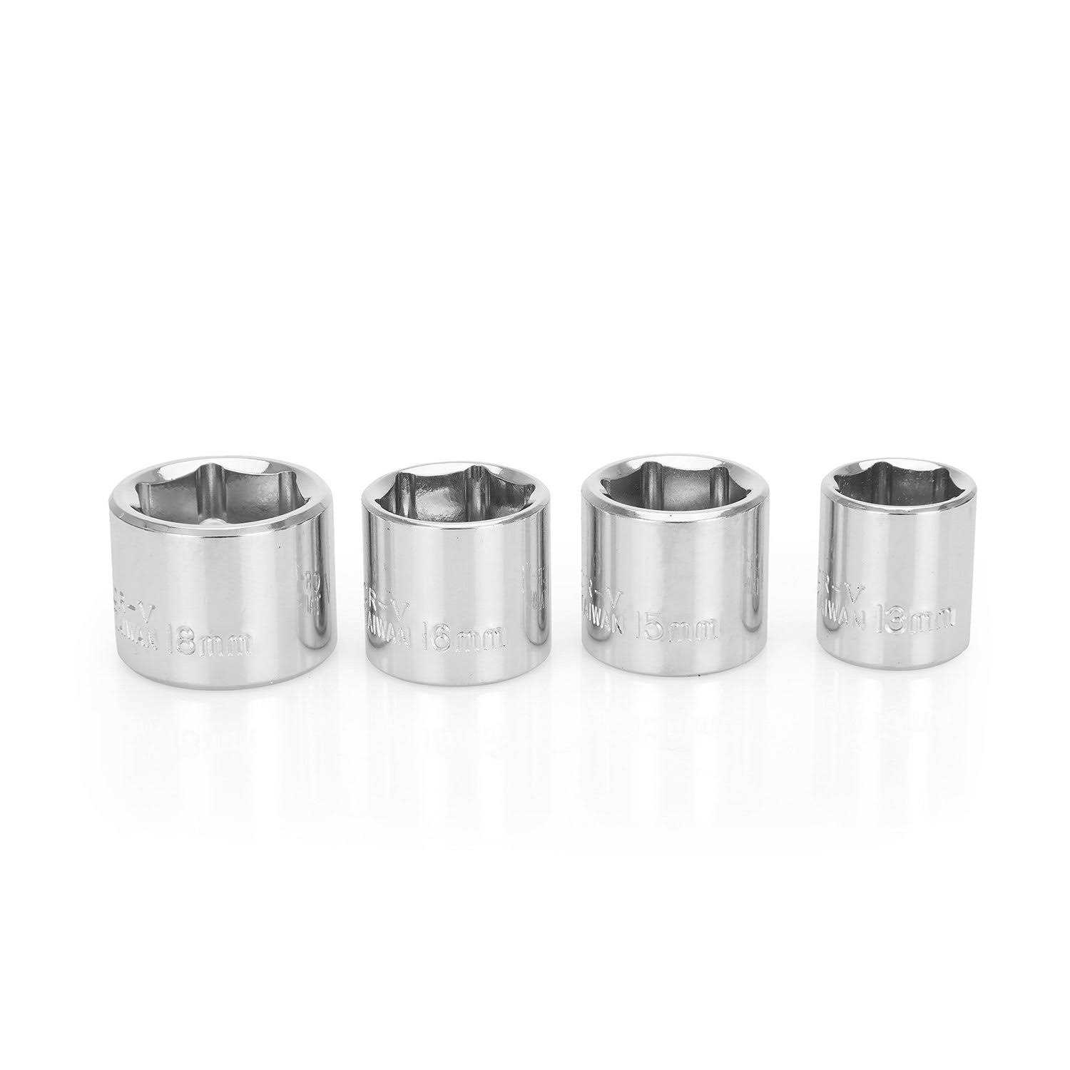 - WIDELY USEFUL: Features a 1/2 inch drive adapter, and 4 sockets, sizes: 13, 15, 16 and 18 mm
