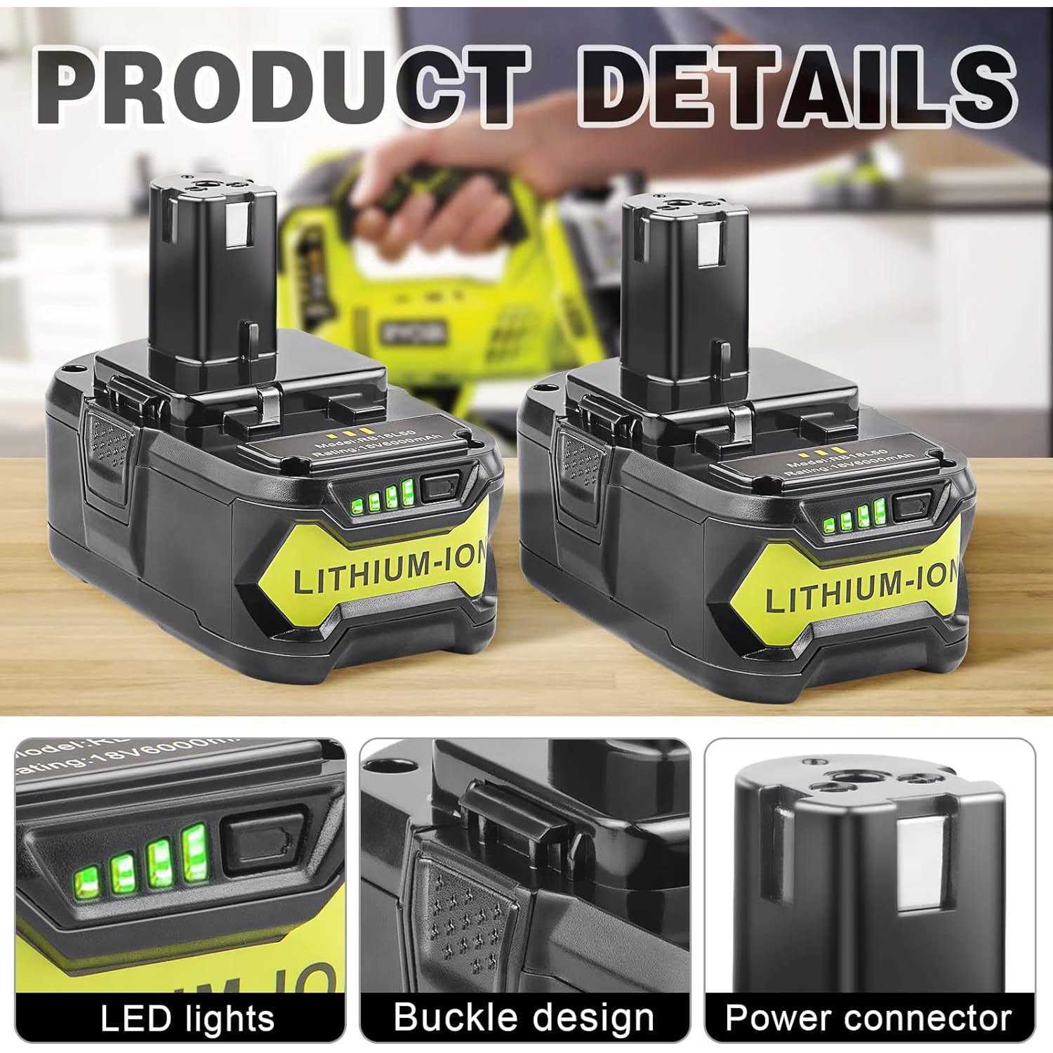 Battery Packs by HIGH QUALITY FUTUREBATT FUTUREBATT. Details:【6.0 Ah Higher Capacity!!!】 6. √ On-board Fuel Gauge Button to check the power condition. √ No memory effect and virtually no power discharge for maximum productivity and reduced down-time. √ Provides extended run-time and optimized power to complete tasks quickly.