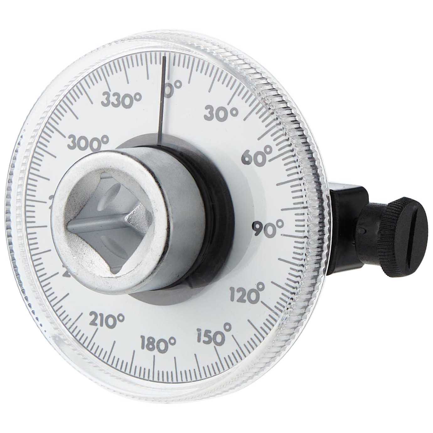 Required when servicing many late model enginesthat use torque-to-yield fasteners. Measures angle of rotation after pre-torque in torque-angle applications. The 360° scale is marked in 2° increments and intervals of 10° and 30° easily zeroed for next application by turning the tool housing. Has 1/2″ Male and Female square drives.