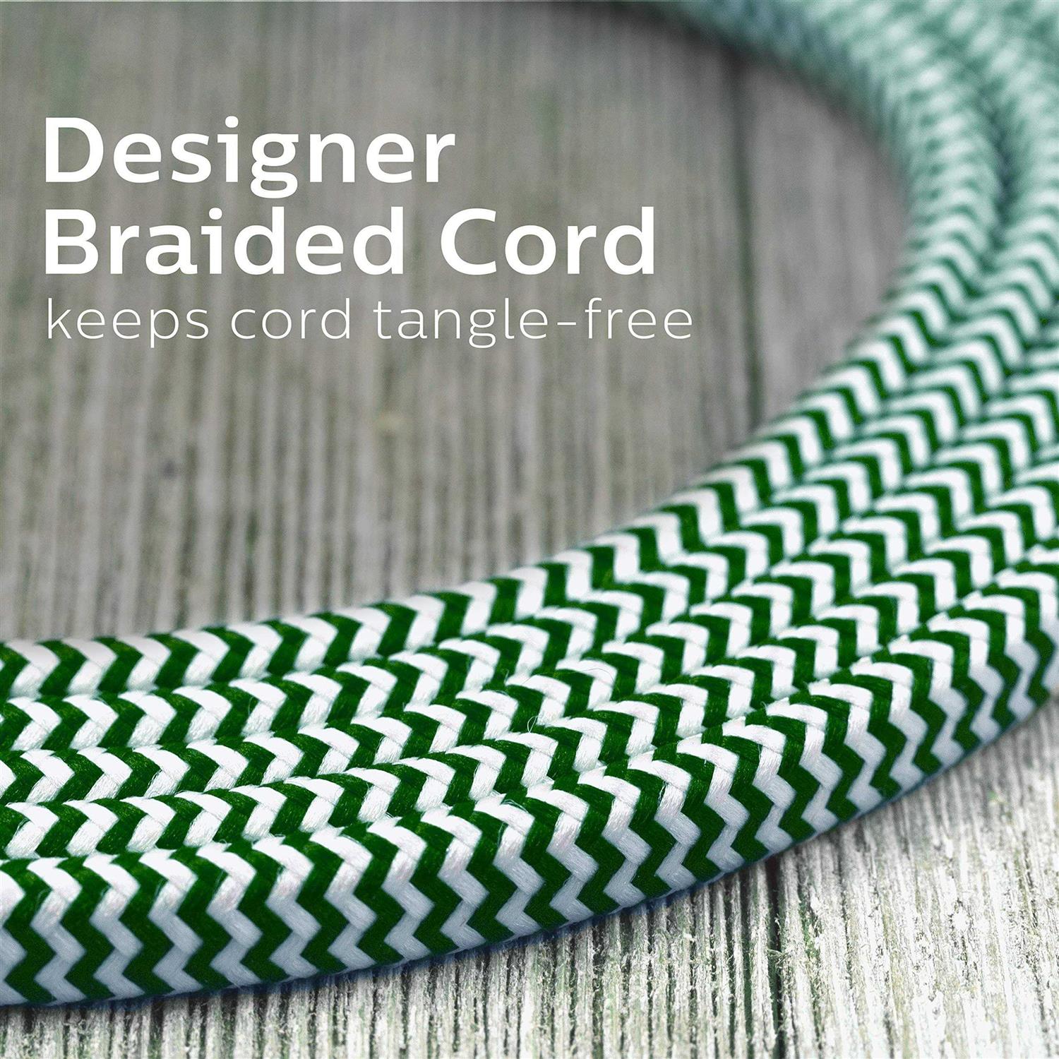 - Stylish – The green finish of this power strip and the green and white premium braided cord blend seamlessly into your home décor