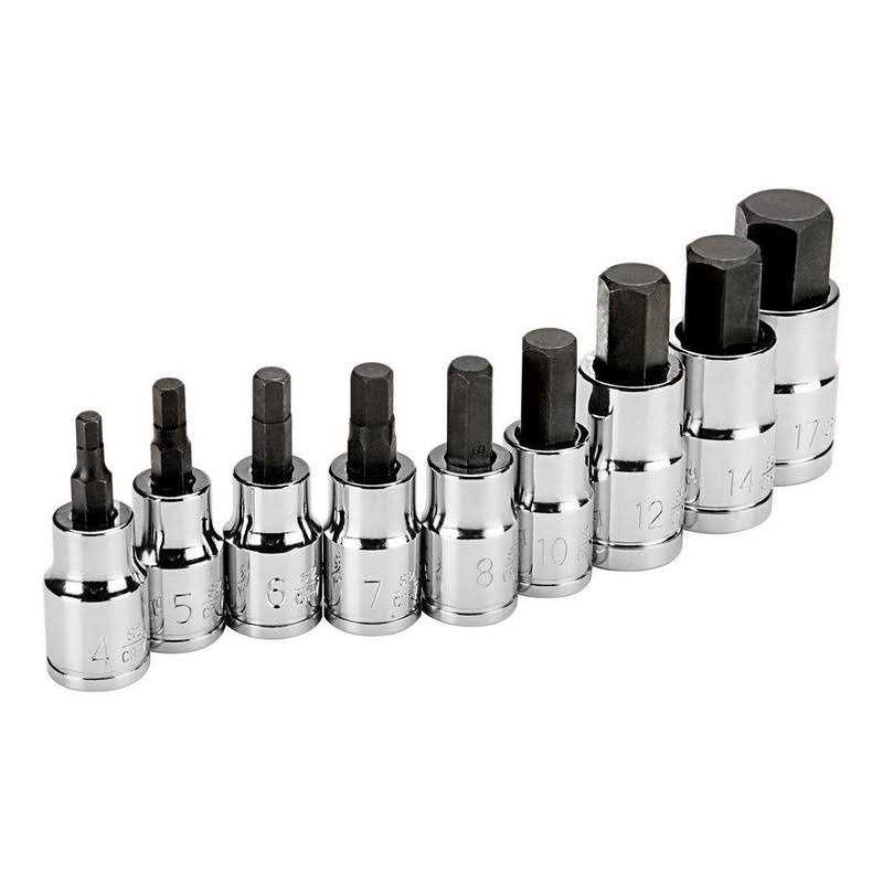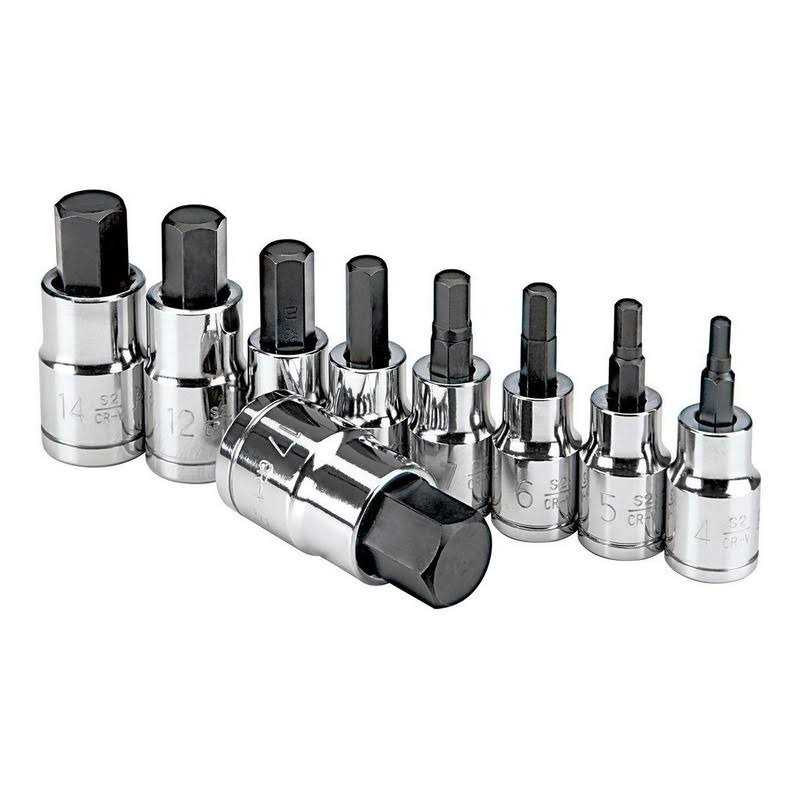 The hex bit socket set features high visibility markings for easy size identification and a chrome vanadium steel construction to withstand heavy use.