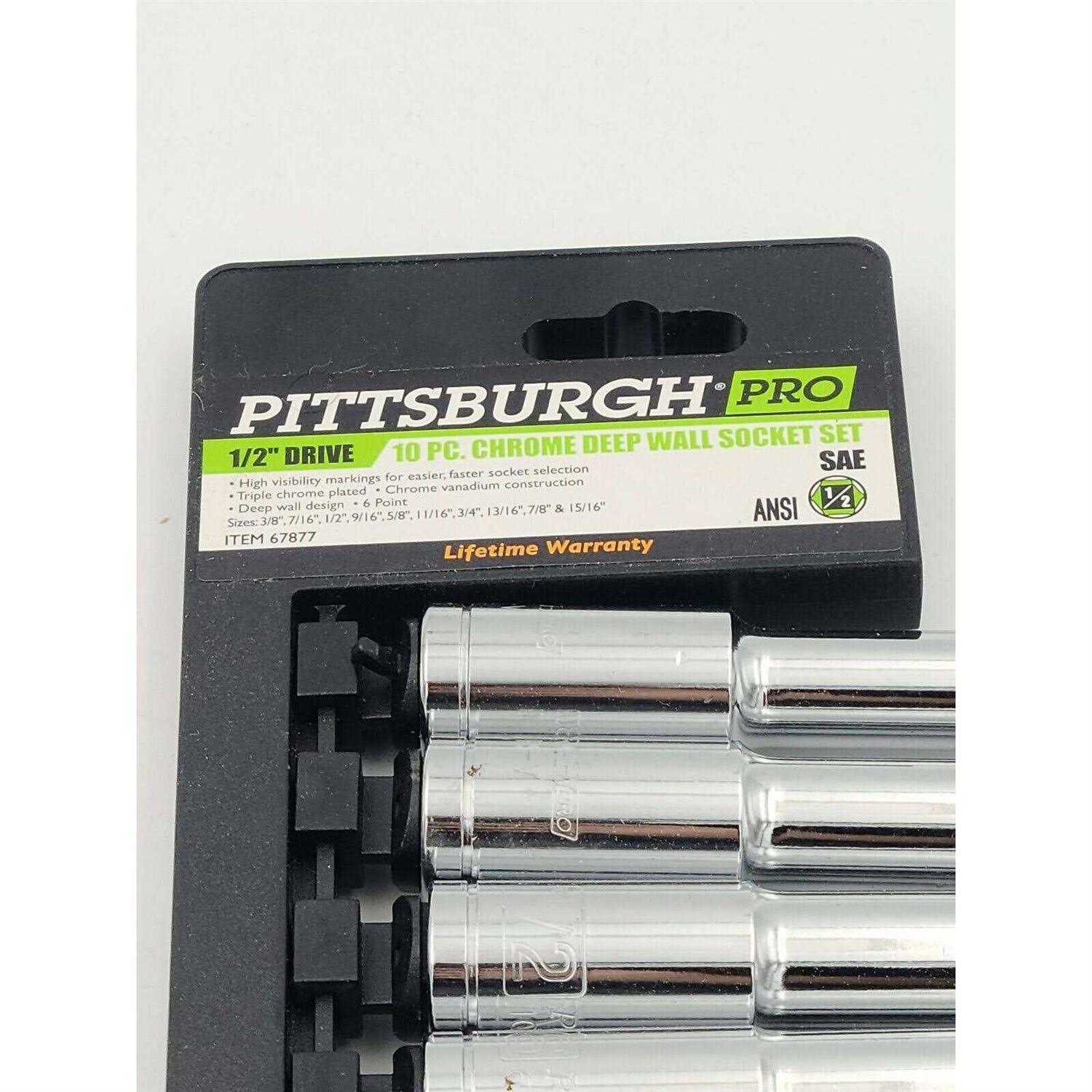 Pittsburgh 67877- 10 PC 1/2 in. Drive SAE High Visibility Deep Socket