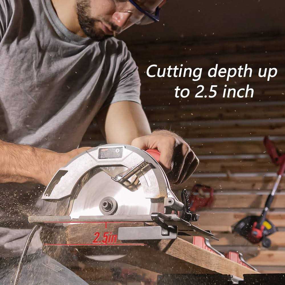 This powerful 7-1/4 in. circular saw is equipped with a 14 Amp motor. The lightweight rugged aluminum housing is easily to handle with all-day use. Easily adjustable footplate for precise bevel cuts. Spindle lock adds user convenience so that blade changes do not require a key.