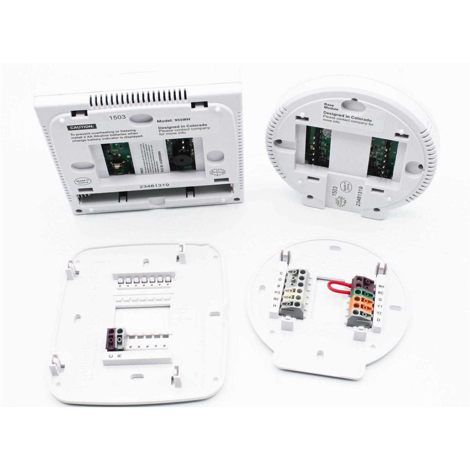 The Pro1IAQ Model T955WH Touchscreen Wireless Thermostat Kit provides a stand-alone wireless thermostat solution. It can be expanded with the addition of other wireless accessories. This touchscreen wireless universal thermostat provides support for most 24VAC heating and cooling systems – up to 2H/ 2C and up to 3H/ 2C for heat pumps. This kit includes a wireless thermostat and base module. The thermostat can be located anywhere while the base module wires directly to the HVAC equipment. The range between the T955WH thermostat and the base module is up to 100 feet with no obstructions and up to 50 feet in standard residential construction.
