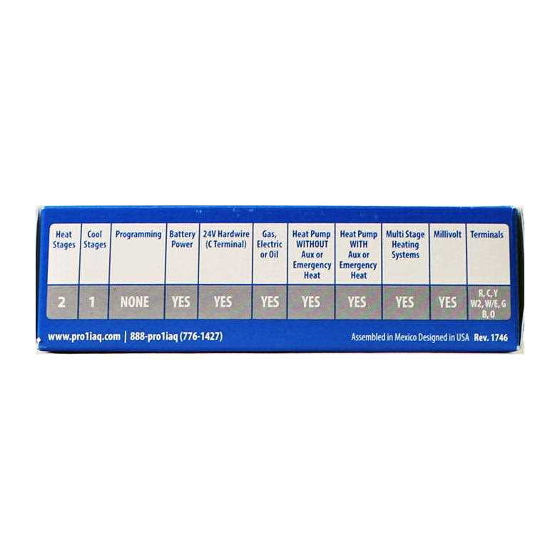 PRO1 specializes in the design and manufacturing of professional grade products that improve the comfort of a home and simplify the installation. All of our products are designed to accommodate the performance and reliability demands of professional heating and cooling technicians. Heating and cooling accounts for almost half of our annual home energy consumption. You can personally reduce nearly 2,000 pounds of carbon emissions annually with a few simple adjustments. The American Council for an Energy Efficient Economy has more tips for saving energy on heating and cooling.Separate heating and cooling swing (cycle rate) adjustments including 2nd stage adjustments. Room temperature calibration adjustment. 5 minute compressor delay protection (selectable on or off).