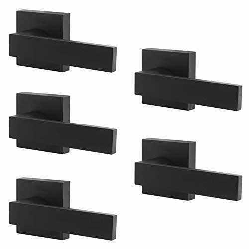 Probrico [Pack of 5]Door Lever Dummy Lever Door Handle for Closets French Doors,Square Dummy Door Lever,Non-Turning Single Side Pull with Black Finish