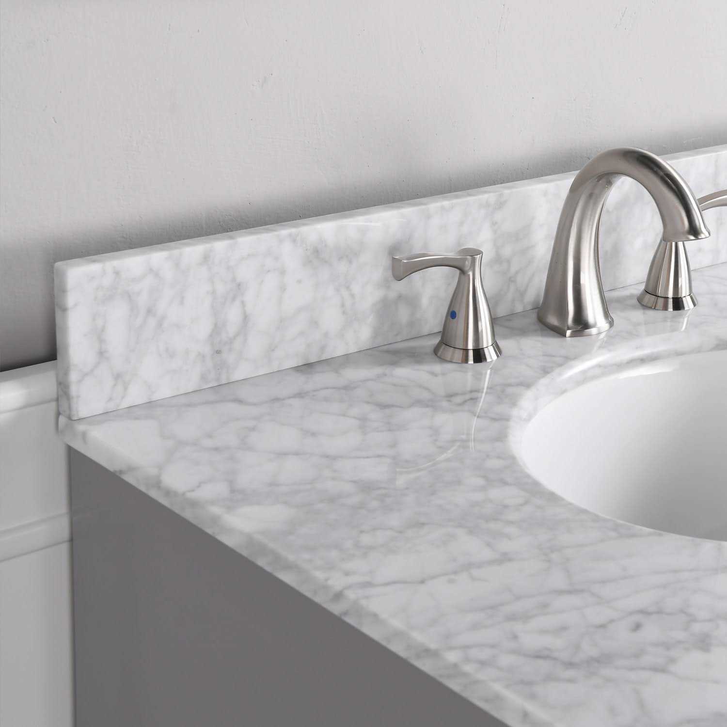 Add a touch of elegance to your bathroom with the PROOX Carrara Marble Stone Vanity Top Backsplash in White. The brilliant white finish of this natural marble backsplash complements any bathroom dcor, and its non-porous surface resists bacteria, mold, and mildew for a cleaner and healthier home. Protect your walls from water damage and prevent moisture from reaching the back of your cabinet and floor areas. This easy-to-install backsplash requires silicone caulking, and it can be combined with optional side splashes to complete a corner or alcove space. Choose from four different sizes to match your vanity top. DIY assembly required. Features: Protects walls from water damage Prevents moisture from reaching cabinet and floor areas Easy to install with silicone caulking Can be combined with optional side splashes DIY assembly required