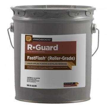 PROSOCO R-Guard FastFlash is a waterproofing, adhesive, and detailing compound for air barrier applications that combines the best characteristics of silicone and polyurethane. This single-component, Silyl-Terminated-Polymer (STP) is easy to gun, spread-and-tool, or roller apply to produce a highly durable, seamless, elastomeric flashing membrane. Allows for same-day installation of windows, doors, and other wall assembly, waterproofing, or air barrier components. Suitable for all climates, FastFlash bonds directly to damp or dry surfaces and cures under a variety of weather conditions. It dramatically reduces surface preparation time by eliminating the need for reinforcing tapes at sheathing joints, inside corners, and outside corners. It simplifies the process of producing watertight details in new or existing construction. Use FastFlash as part of a continuous, building-wide air barrier system, or to complement conventional waterproofing or air barrier components. Use FastFlash to adhere, transition, and counter-flash R-Guard SS ThruWall or other through-wall sheet flashing. ADVANTAGES Available in Gun-Grade or Roller-Grade versions. Streamlines preparation by eliminating the need for joint reinforcing tapes. Silane functional polymer provides superior long-term adhesion, crack bridging, and weathering characteristics. Easy 1215 wet mil application. Bonds to most common building materials without priming. Single component saves time. Produces a durable, weather-tight seal. Bonds and cures in wet weather, on damp substrates, and tolerates rain immediately after application. Will not tear or lose effectiveness when exposed to weather during construction. May be fully exposed to UV and weather for up to 12 months depending upon conditions. If longer, contact for inspection. Compatible with most sealants and waterproofing or air barrier components.