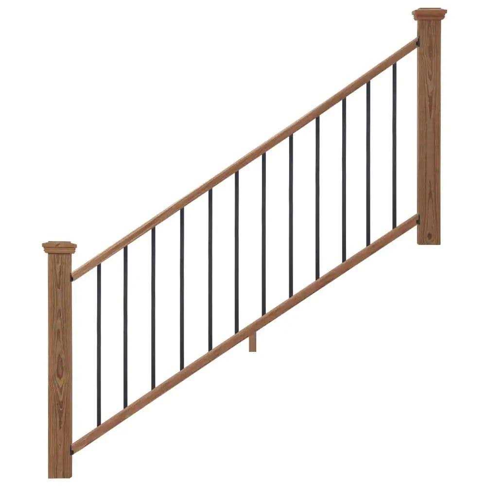 ProWood 6 ft. Walnut-Tone Southern Yellow Pine Moulded Stair Rail Kit with Aluminum Square Balusters