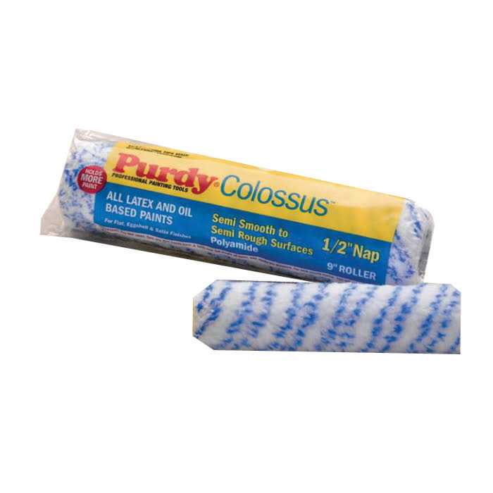 Made of an exclusive formulation of 100% polyamide, Colossus roller covers lay paint off very smoothly and carry a remarkable amount of material to the surface without dripping or splattering. This product rolls one-third farther than traditional lambskin roller covers and backrolls over 10,000 square feet – other products wear out in less than half the time. Perfect for rolling a great deal of new drywall quickly, Colossus roller covers hold and release more paint than any other Purdy roller fabric. Designed for heavy-duty painting projects. Also great for stucco, T1-11 siding, brick or rough-textured walls.