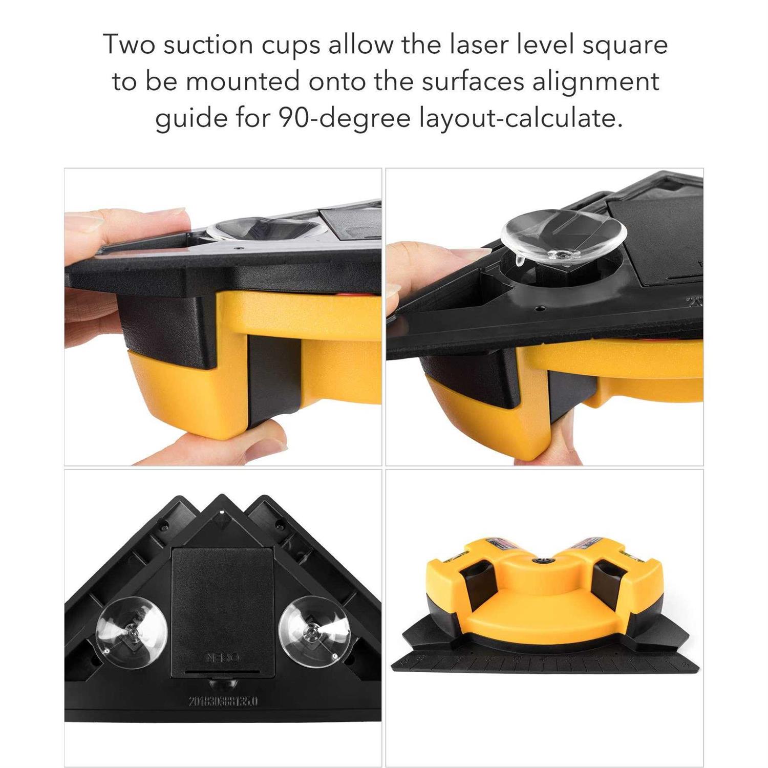 QWORK Right Angle 90 Degree Horizontal & Vertical Laser Level Line Projection Square Level Laser with Two Suction Cups